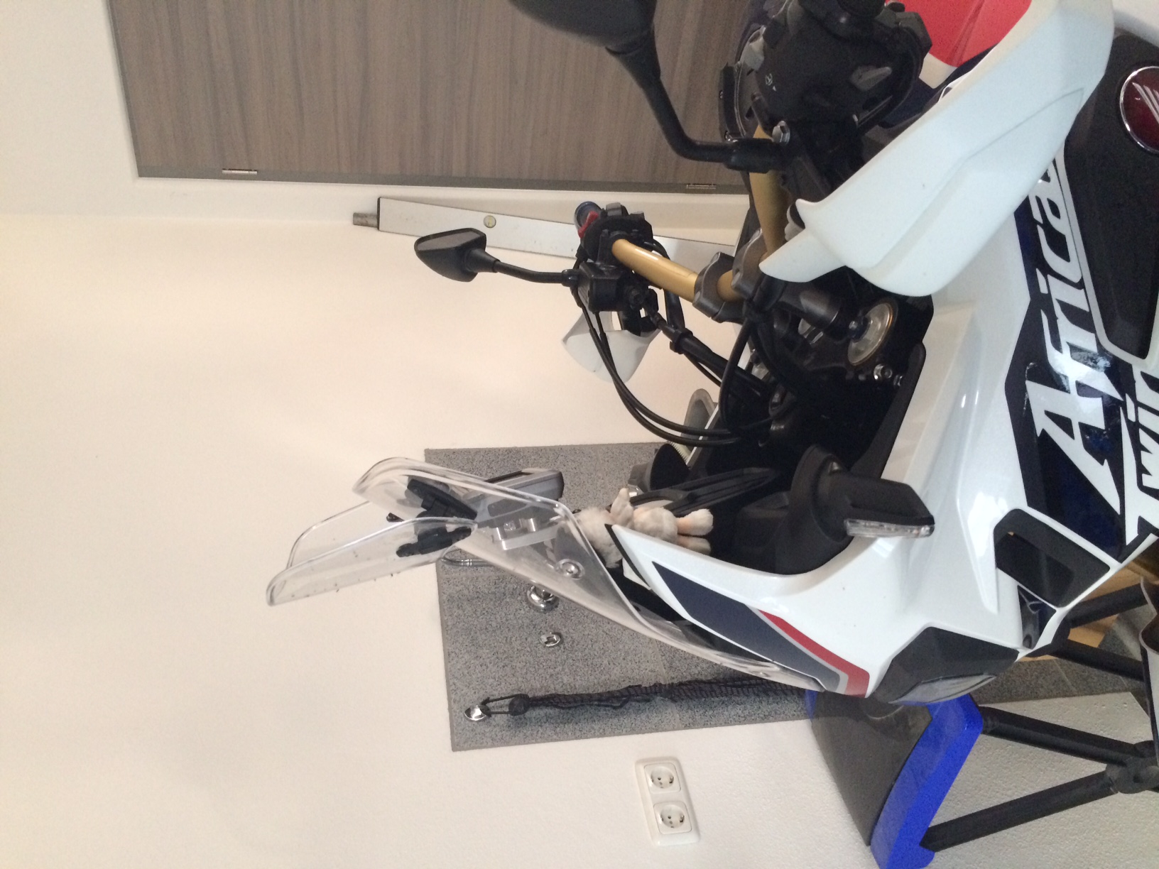 Die cbr hatte einen Superbike Lenker montiert und eine etwas höhere Tourenscheibe von MRA.