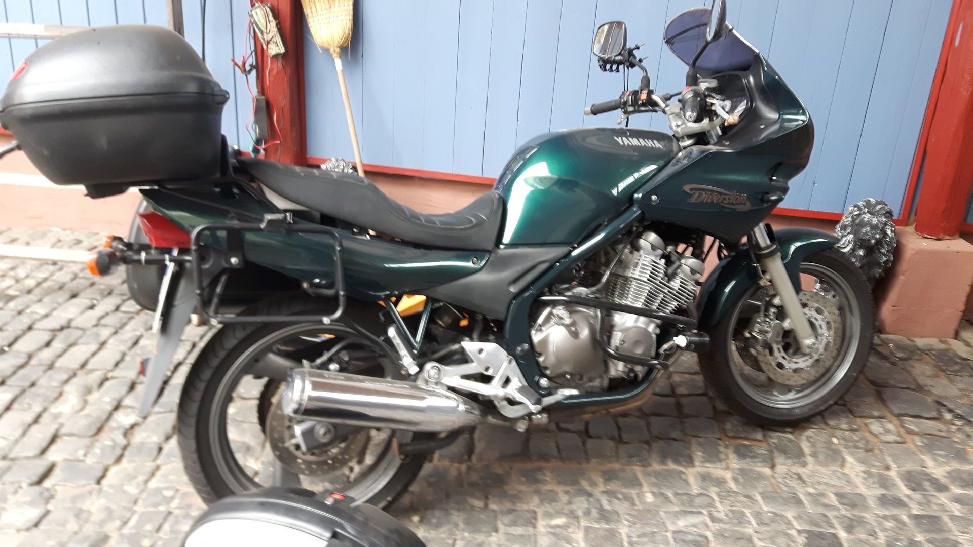 So hat der freundliche Tankwart telefoniert und mich durch die Gegend gefahren, bis wir einen Laden fanden, der auch am Samstagnachmittag noch Motorradschlaeuche verkaufte.