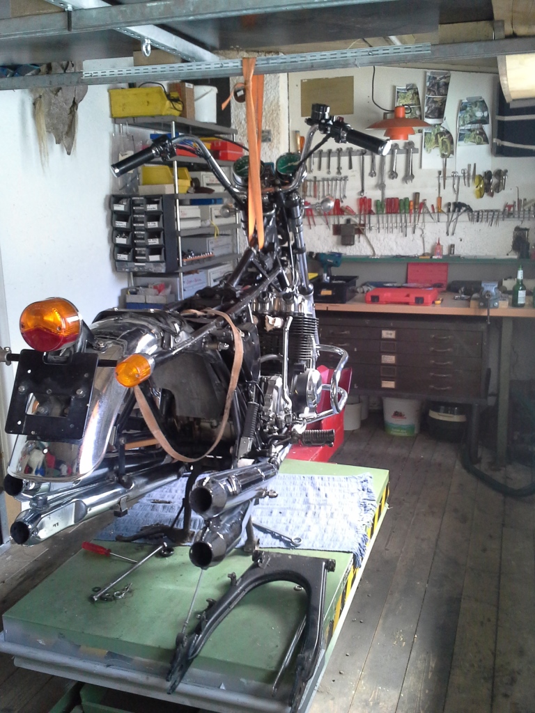 Neben der CRF ( die gerade etwas zerbeult ist) noch eine KLX 250, 2800 km drauf und eine 750 Four K6 ! Wobei ich die K6 auch zerlegt habe, zwecks Neuaufbau.