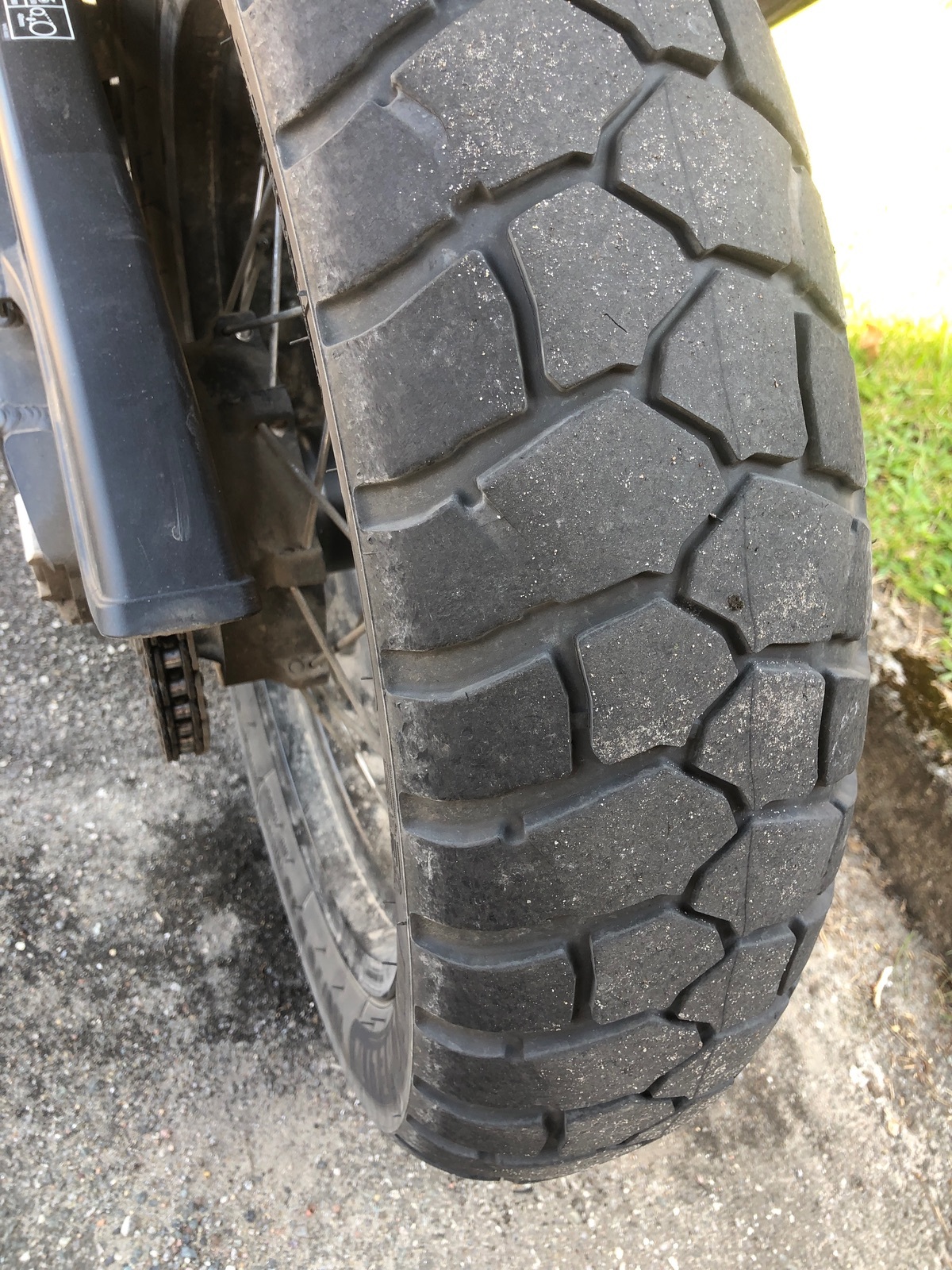 Der hat jetzt ca. 11500 km auf der Rille und schaut noch recht passabel aus, wie ich finde. Allerdings liegt der K60 schon beim Puschenhändler, den ich gerne für ein paar Wald- und Wiesentouren drauf hätte (inkl. Walsrode).