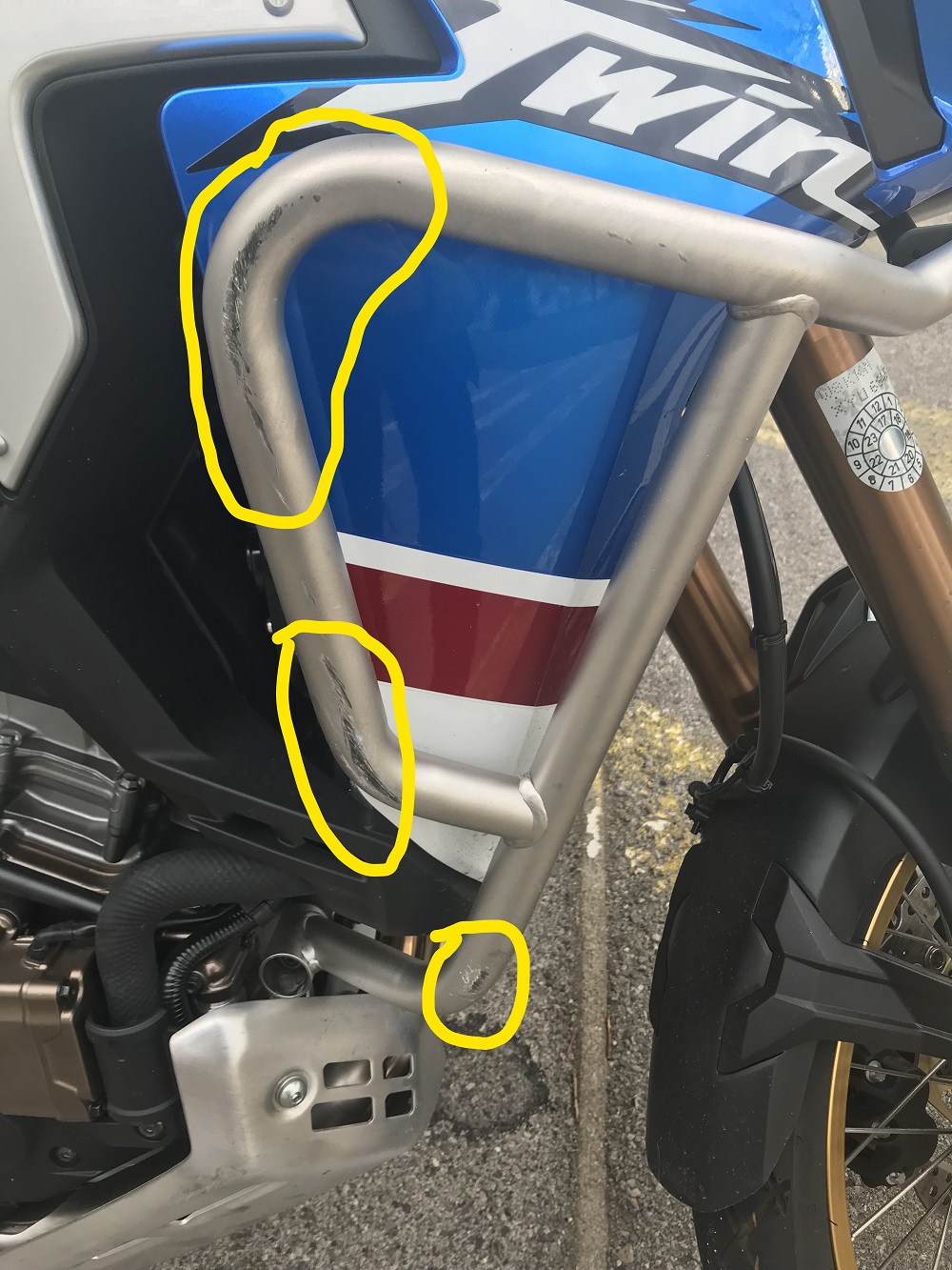 ich weiß zwar, dass Kratzer irgendwann dazugehören ... aber meine Adventure Sports ist noch ganz frisch, und es hat mich leider bei einer rutschigen Kurve (eh bei 20kmh) hingelegt - und jetzt ist der Motorschutzbügel ordentlich zerkratzt (siehe Foto im Anhang).