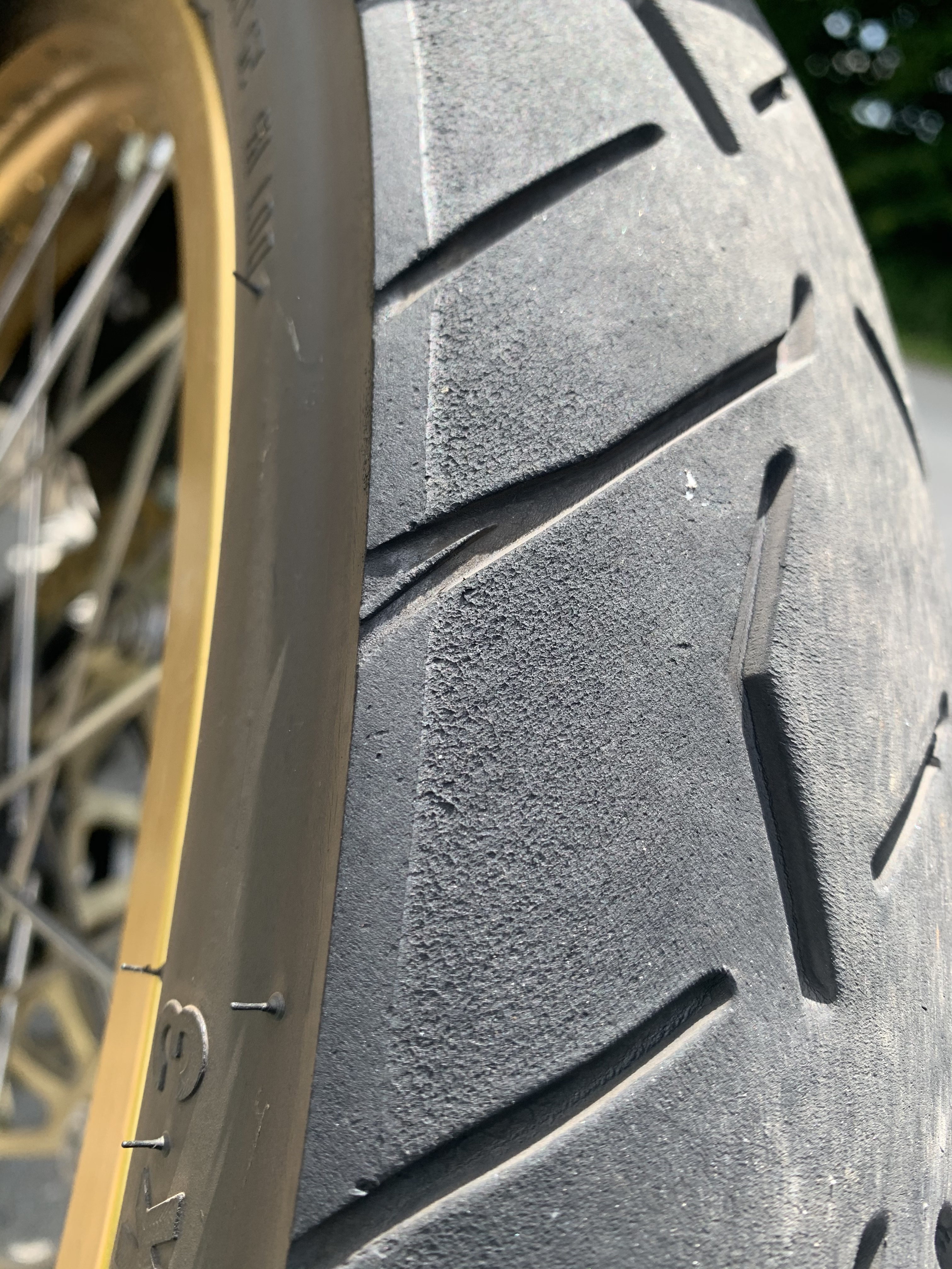 Er hat noch zw. 5-5,6mm Profil und fährt sich wie gehabt, VR-Reifen noch gut 3mm mittig und außen.