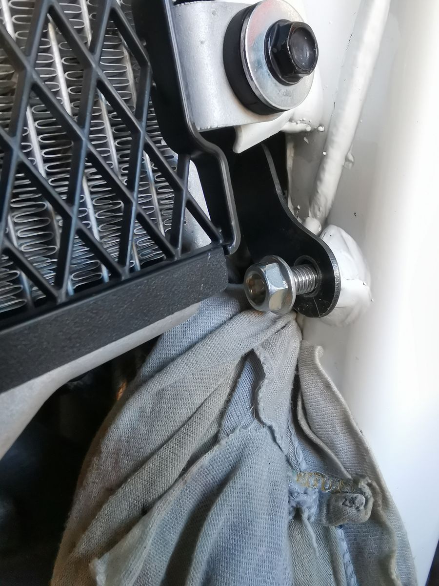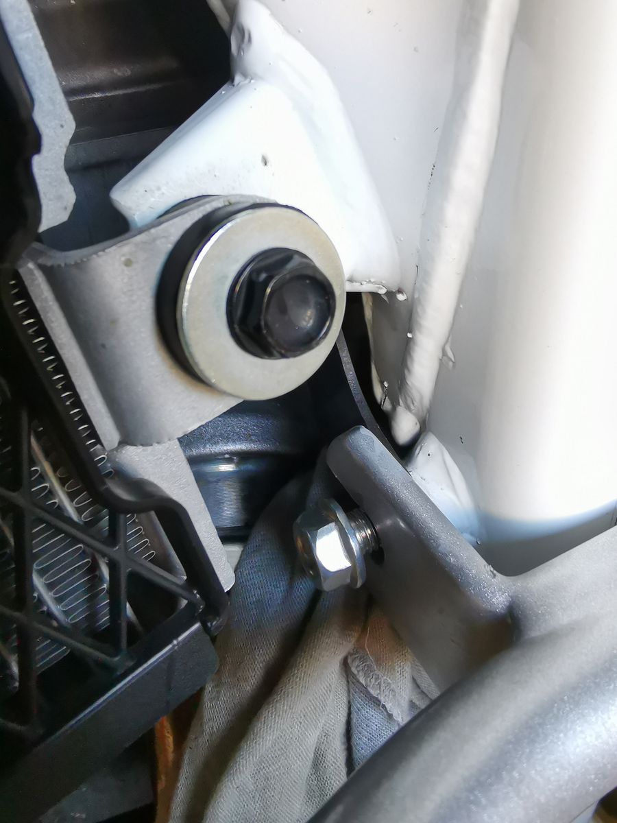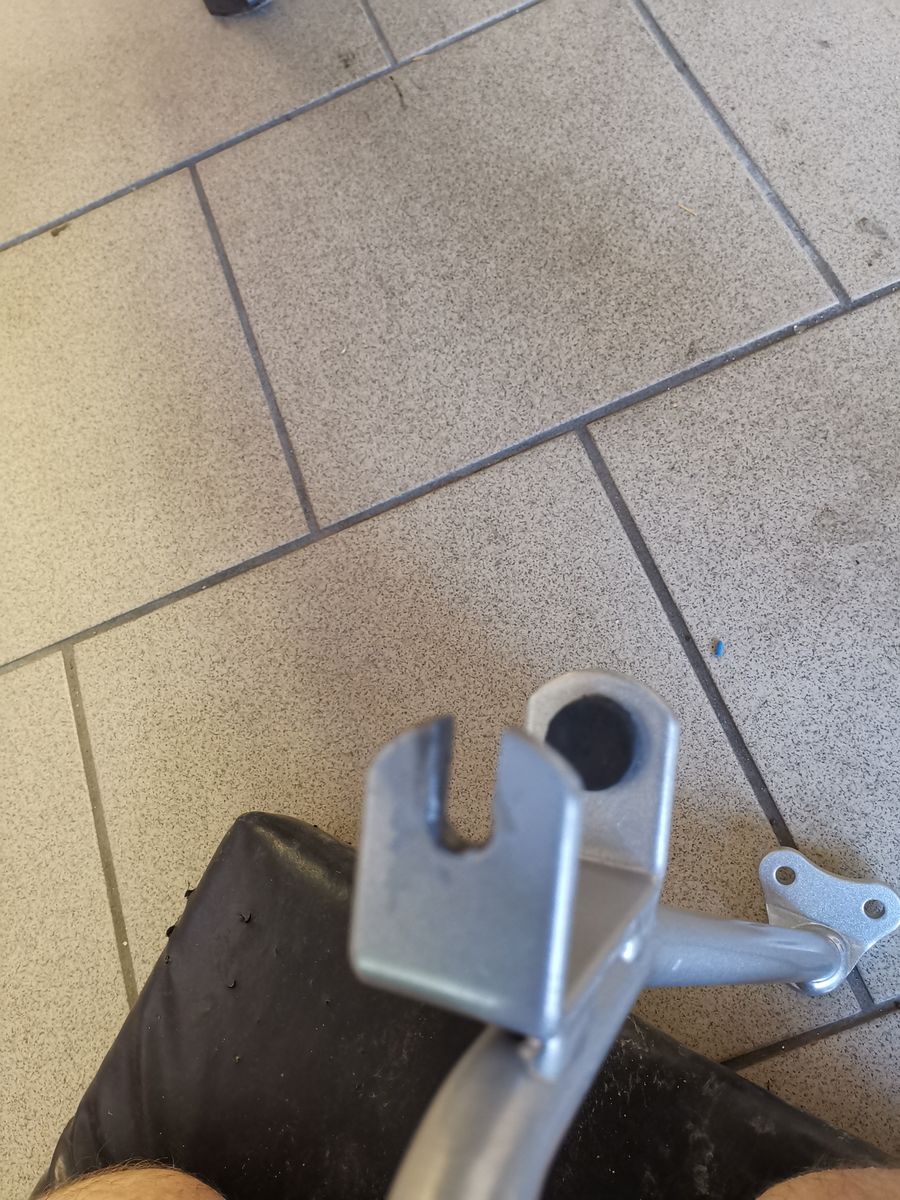 Einzig die Montage ist eine Katastrophe. Nachdem 3ten Anlauf die eine 8er Schraube am Rahmen anzusetzen hab ich den Bügel kurzerhand modifiziert. Es war schier unmöglich die Schraube durch den Bügel, den weiteren Halter am Gewinde anzusetzen. Da der schwarze vorhandene Halter nicht in Position gedrückt werden konnte.