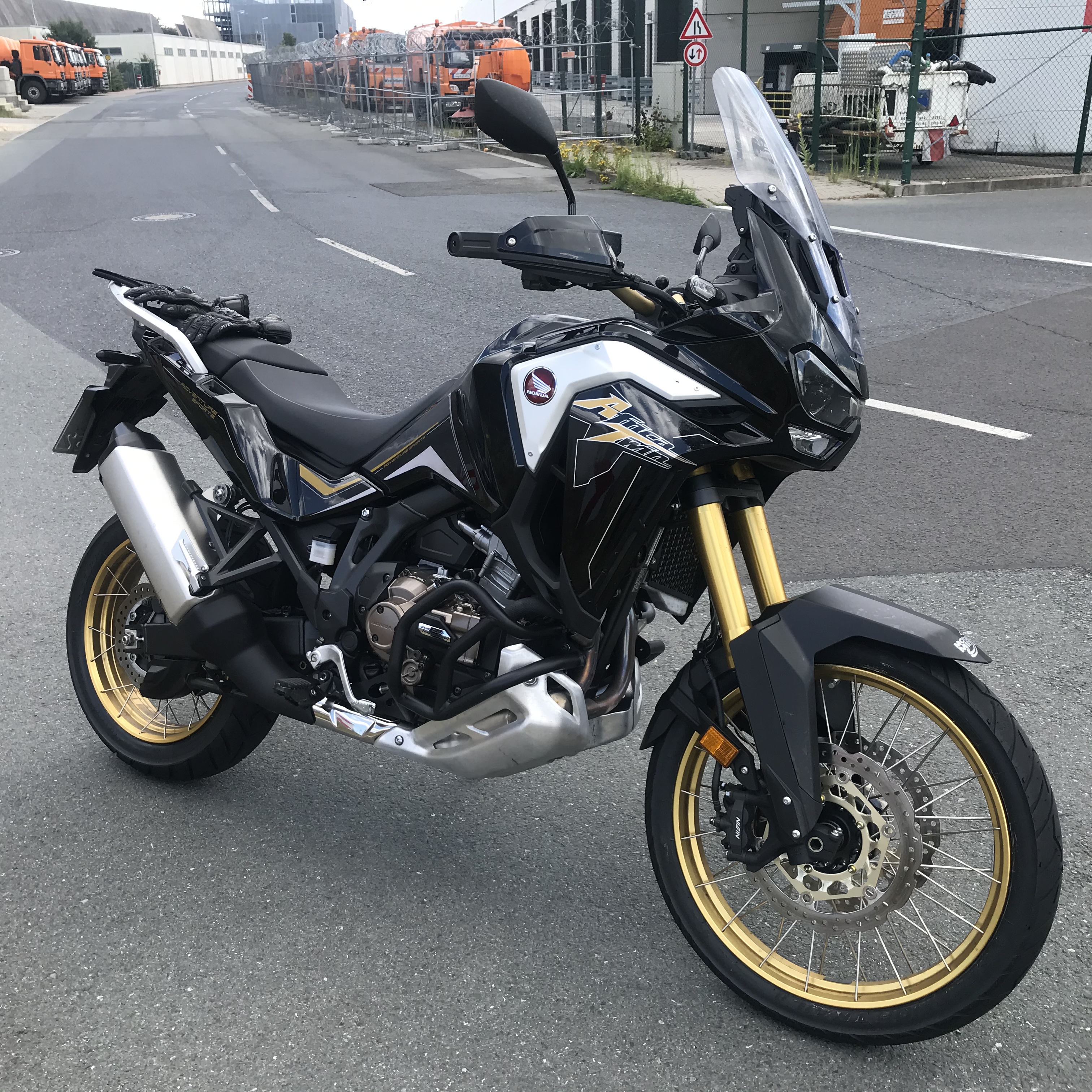 Nach Wechsel auf die 1000er Basis-AT mit ebendiesem Dekorrahmen aus der 2019er-Touratech-Travel-Aktion habe ich den Versteifungsbügel erneut montiert.