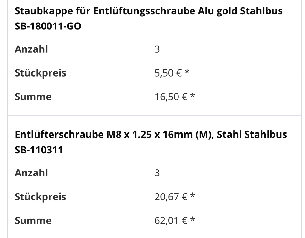 Hat jemand Stahlbus Entlüfterventile für Bremse verbaut ?