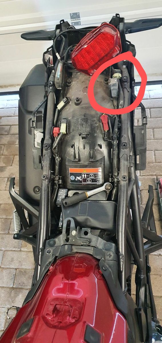 Ein 4 pooliger Stecker hinter der Tachoeinheit. Ein 2 pooliger Stecker links unter der Seitenverkleidung. (Bei der ATAS bereits belegt mit Heizgriffe) und anschließend der 6 poolige Stecker unter der Sitzbank links.