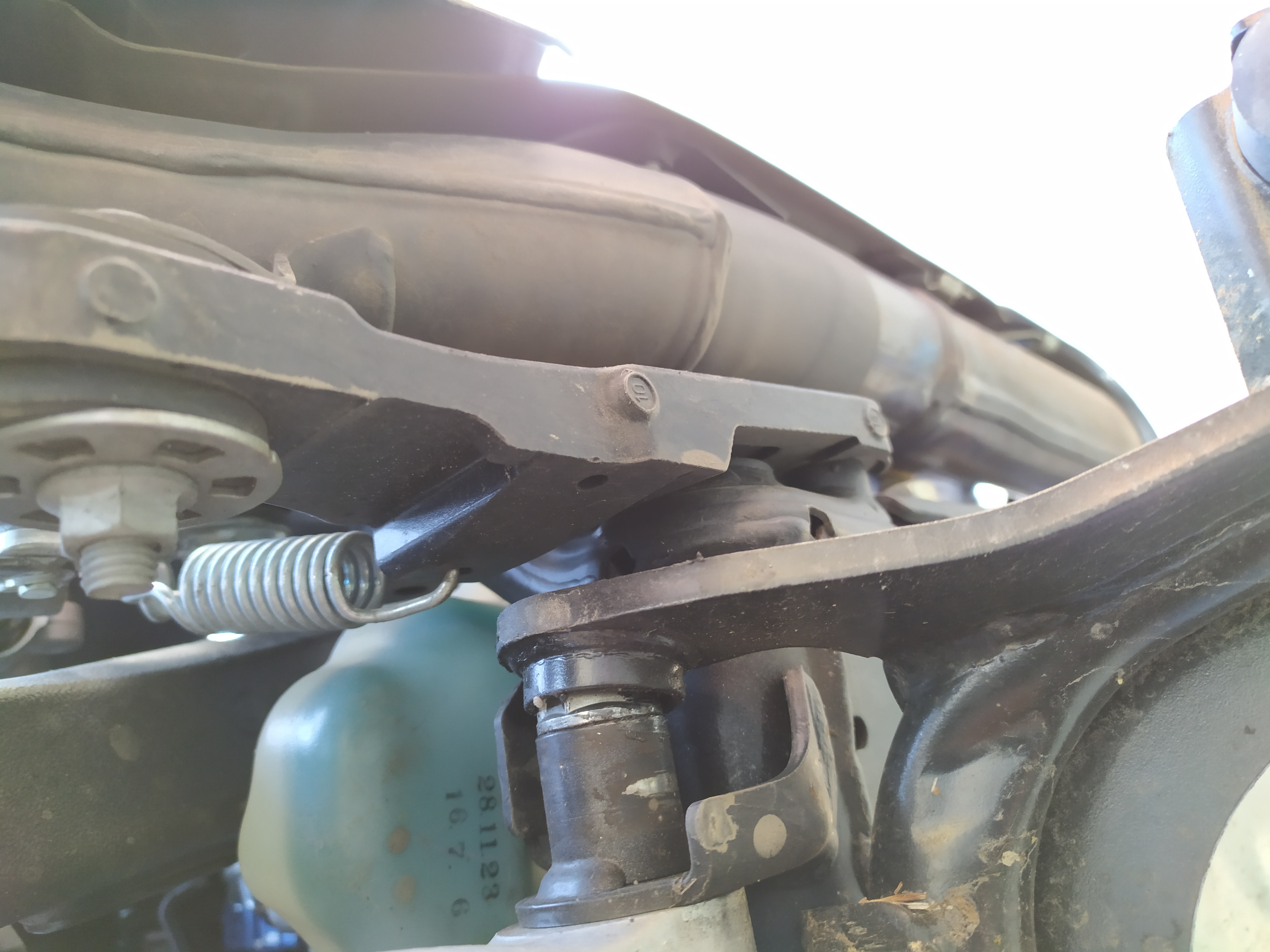 Als ich nach hause fahren wollte ist beim abbocken der Hauptständer teilweise abgefallen und hat sich schief verkeilt. Die federn standen unter starkem zug und ließ sich mit ottonormalwerkzeug nicht heraus nehmen. Es hat knapp zwei Stunden gedauert den Hauptständer so zu wackeln, dass er einigermaßen wieder hochklappte und ich ihn mit dicken kabelbindern fixieren konnte.