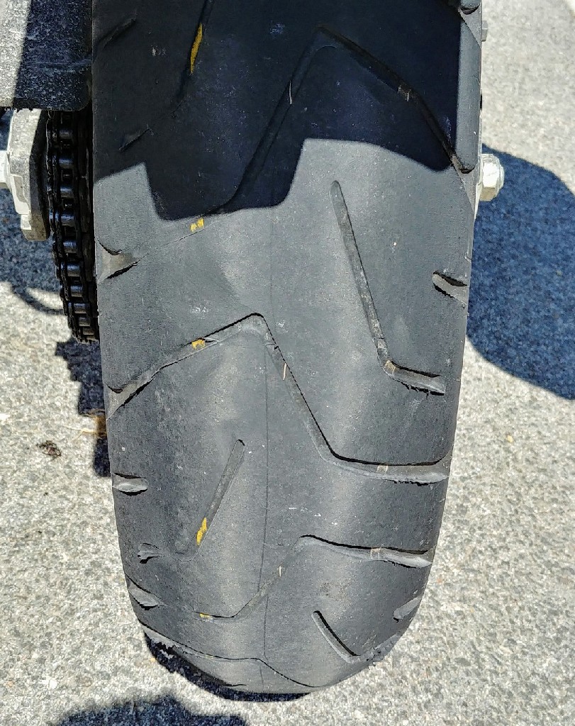 Leider hat der Hinterreifen dann doch schneller abgebaut wie ich geschätzt hatte. Nach 9 800 km ist nun Ende, muss nur noch die restlichen 300 km bis nach Hause halten.