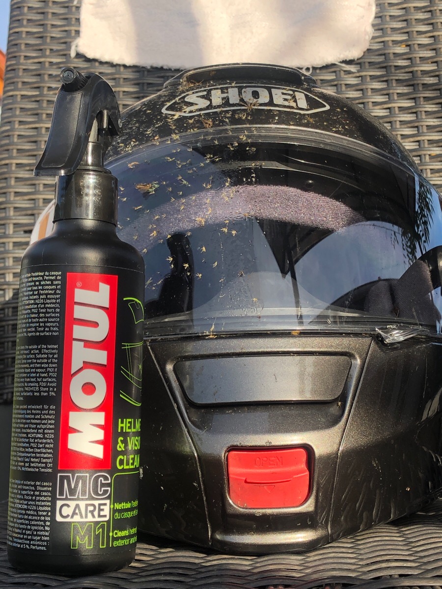 Jetzt habe ich mir das MOTUL M1 Helmet & Visor Clean" bei Amazon für 25€ per Liter frei Haus Nachhause bestellt.