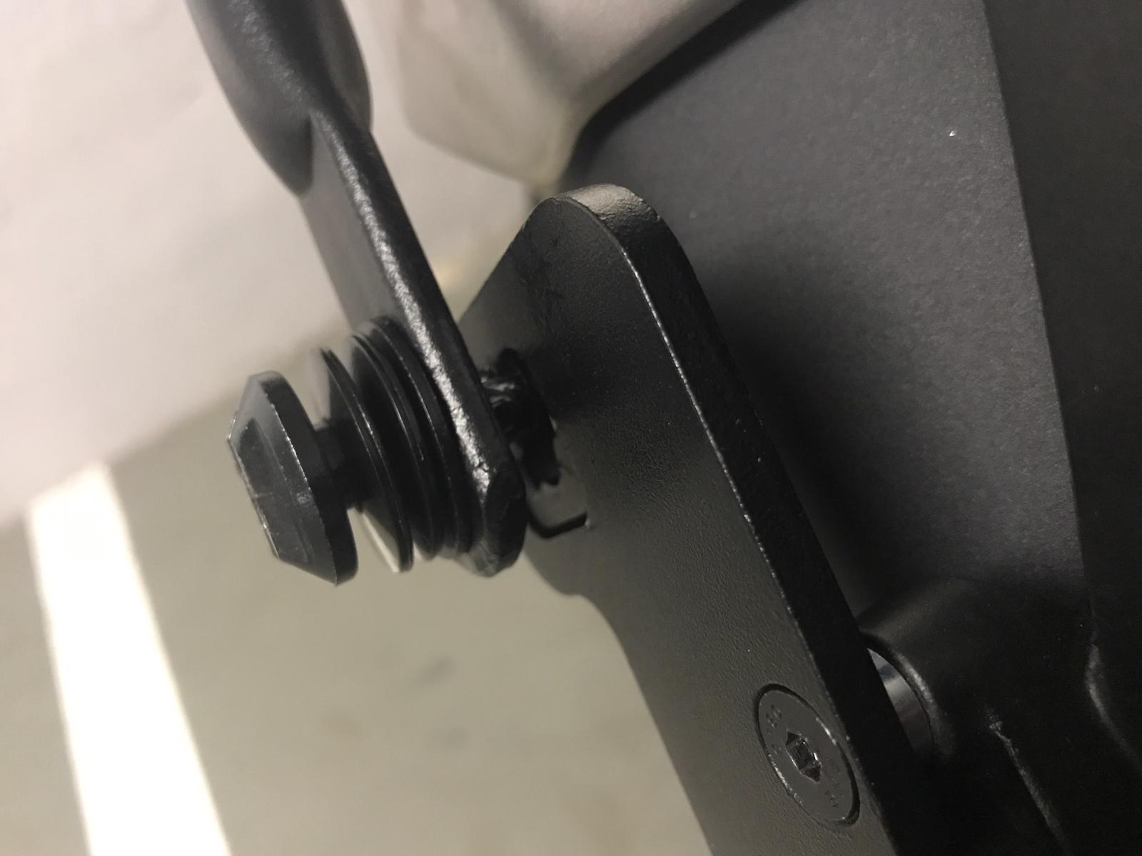 Ich solle doch mal die Schrauben der Fußraste lösen und diese um einige mm versetzen, vielleicht passt es dann besser. Soll ich die jetzt locker da rum baumeln lassen oder was? Also ich muss schon sagen, dass ich nicht zufrieden mit den Trägern bin. Die Befestigungsnasen, die oben eingehängt werden haben auch schon unschöne Macken erzeugt, weil da eben so viel Druck gegen sitzt.
