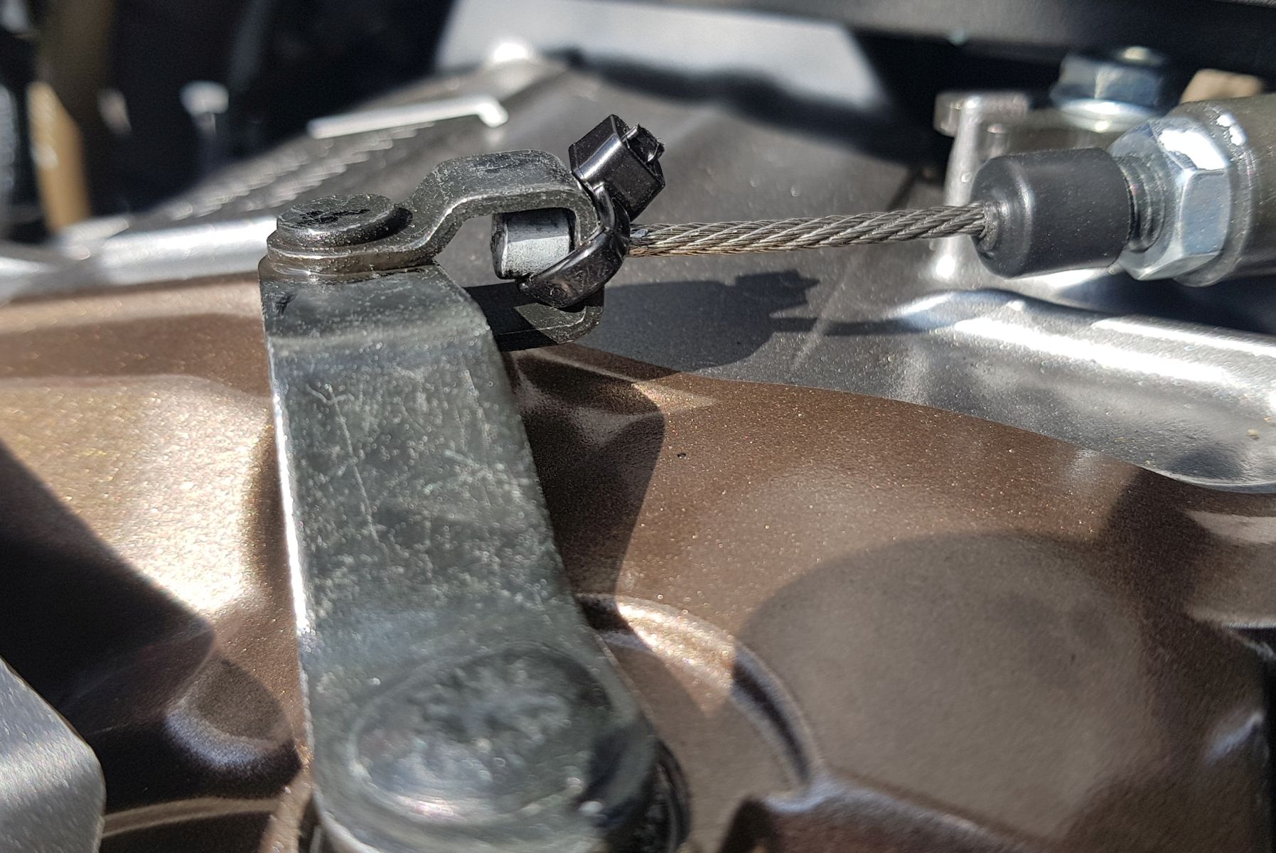 der Kupplungszug lässt sich sehr leicht bei korrekt eingestellter Kupplung aushängen.