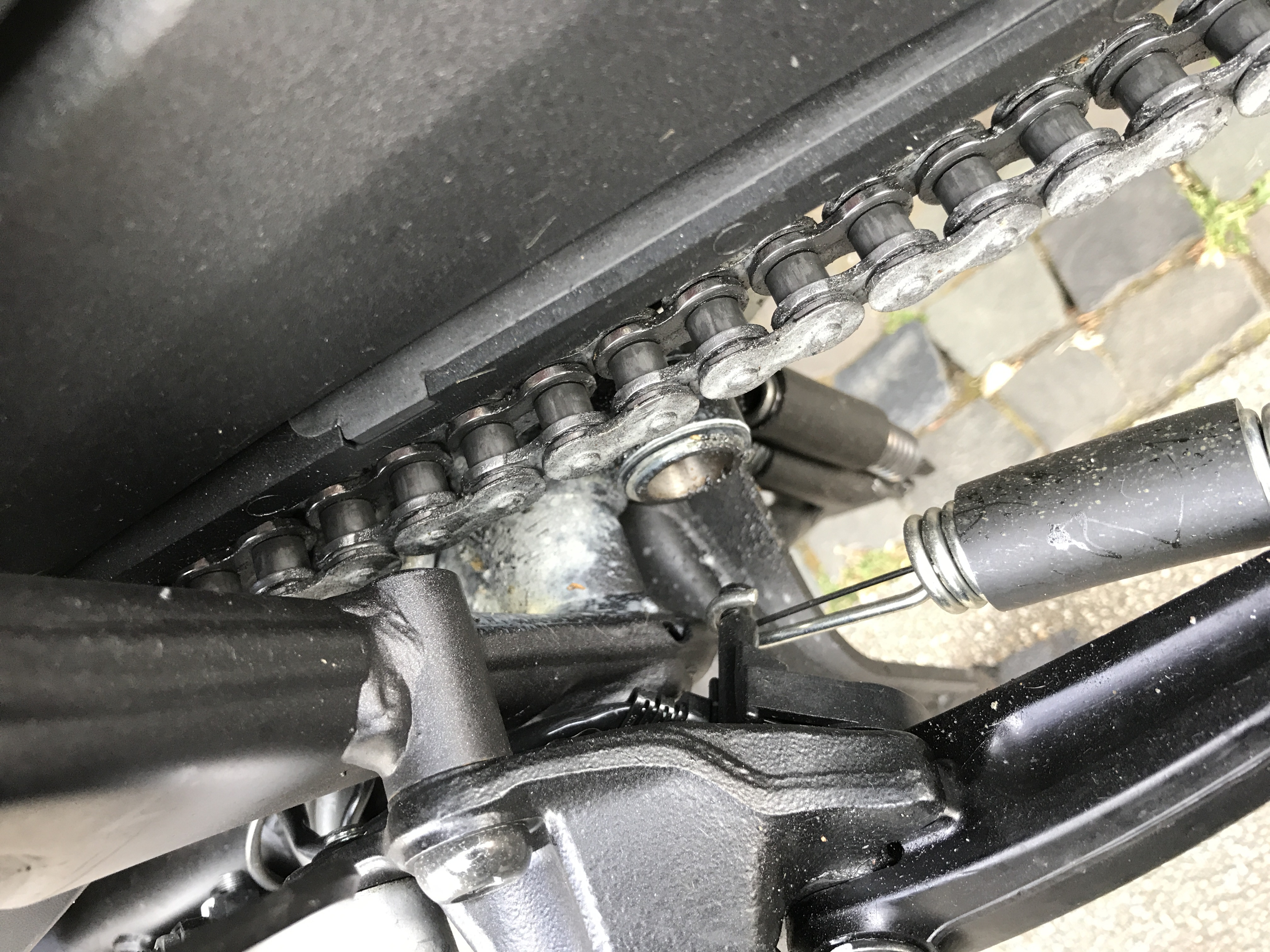 Jetzt, ca. 1400km später ist wieder alles voll (die 1000er war vor 2 Wochen) und auch die Kette scheint sich silbrig zu verfärben (kann aber auch was anderes sein). Haben die bei der 1000er vllt. Wieder rumgeschmiert oder wo kommt das ganze Zeug her?