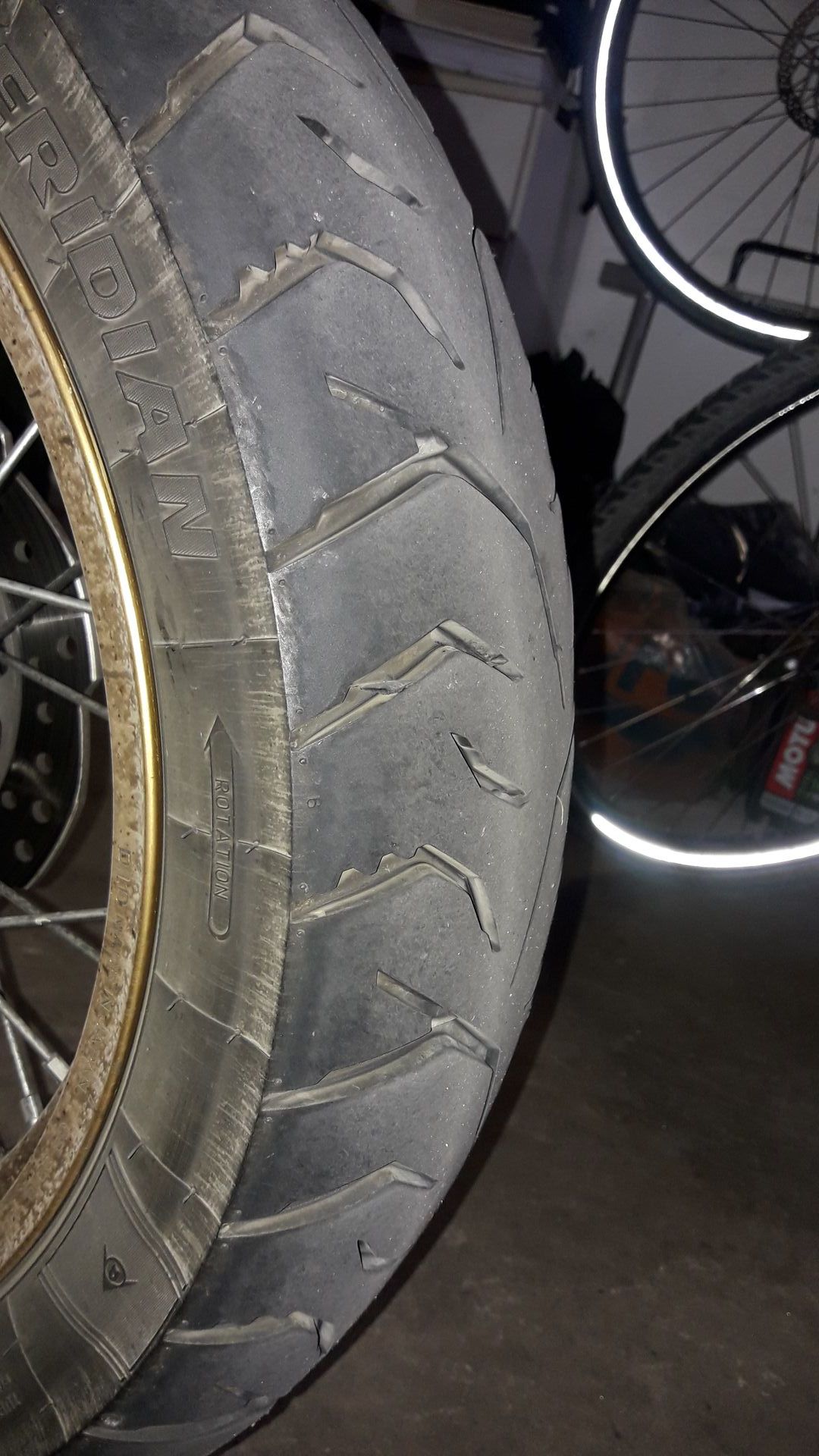 Reifen Temperatur danach 62°CIch finde den Meridian Trailmax ausgewogen. Als Neureifen ist er nicht so kippelig, wie manch anderer Neureifen mit Strassenprofil. Er benötigt ein bischen Druck auf den Lenker, bei mittel schnell gefahrenen aber schnellen Seitenwechseln links/rechts- Kurven.