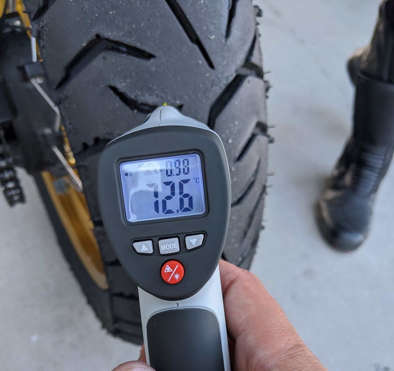 #77 Der Hinterreifen war sicher nahe an den 80 Grad dran, der vordere hatte 40 Grad, das wäre ja optimal)