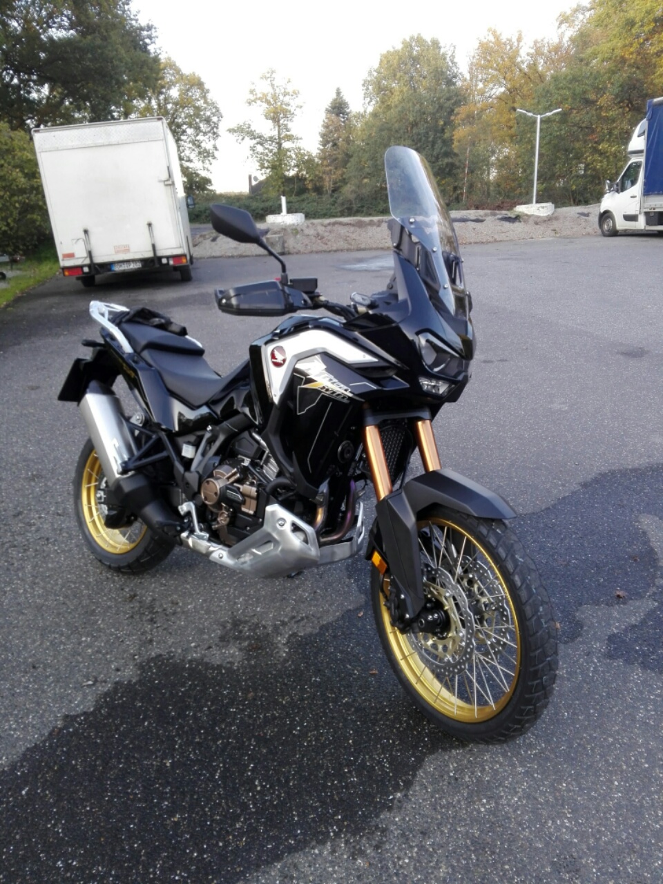 Das Windschild der Adventure Sports harmoniert sehr, sehr viel besser mit meinem Helm, als das der SD06, welches ich radikal eingekürzt habe. (Das hat man bei Honda offenbar als Vorlage zur Standard SD09 genommen, lach.)