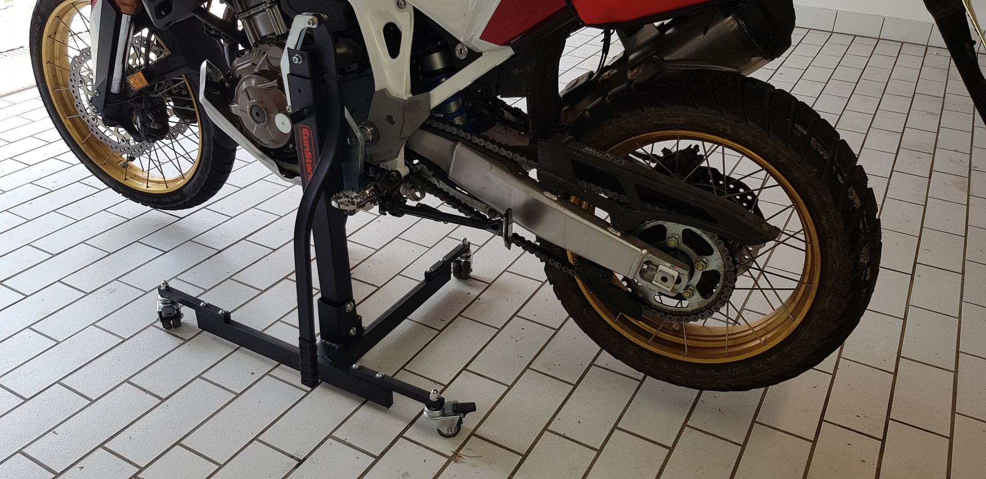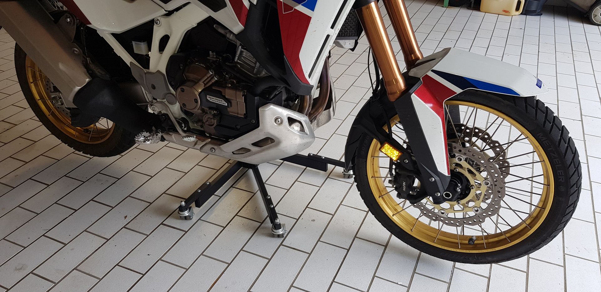 ich habe bei Bursig und Biketower, den führenden Qualitätsherstellern für Zentralständer, nachgefragt, ob es einen Ständer für die AT gäbe. Es wurde mir zweimal eine Absage erteilt. Die Rentabilität sei nicht gegeben hieß es unter anderem.