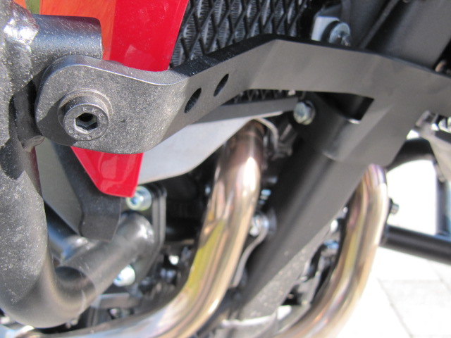 ja, ist mehr als grenzwertig ungenau auf der rechten Seite. Auch die Hupe steht der Querrstrebe im Weg, die hab ich aber gleichgebogen. Den rechten Fersenschutz wollte ich auch nicht anbohren und hab die ewig lange Schraube etwas gekürzt. Jetzt ist der Schutz ohne Bohrung dran. Macht aber im gesamten einen sehr stabilen Eindruck, im Vergleich zu den hohen Zierbügeltrittbrettanbietern, TT, AQ und HB.