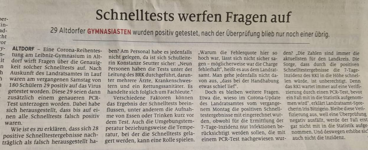 #1.233 Alles anzeigenZum Glück nicht, für diesen Wert werden nur anhand eines PCR-Tests ermittelte gewertet. Ein positiver Schnelltest muss somit in jedem Fall erst bestätigt werden.