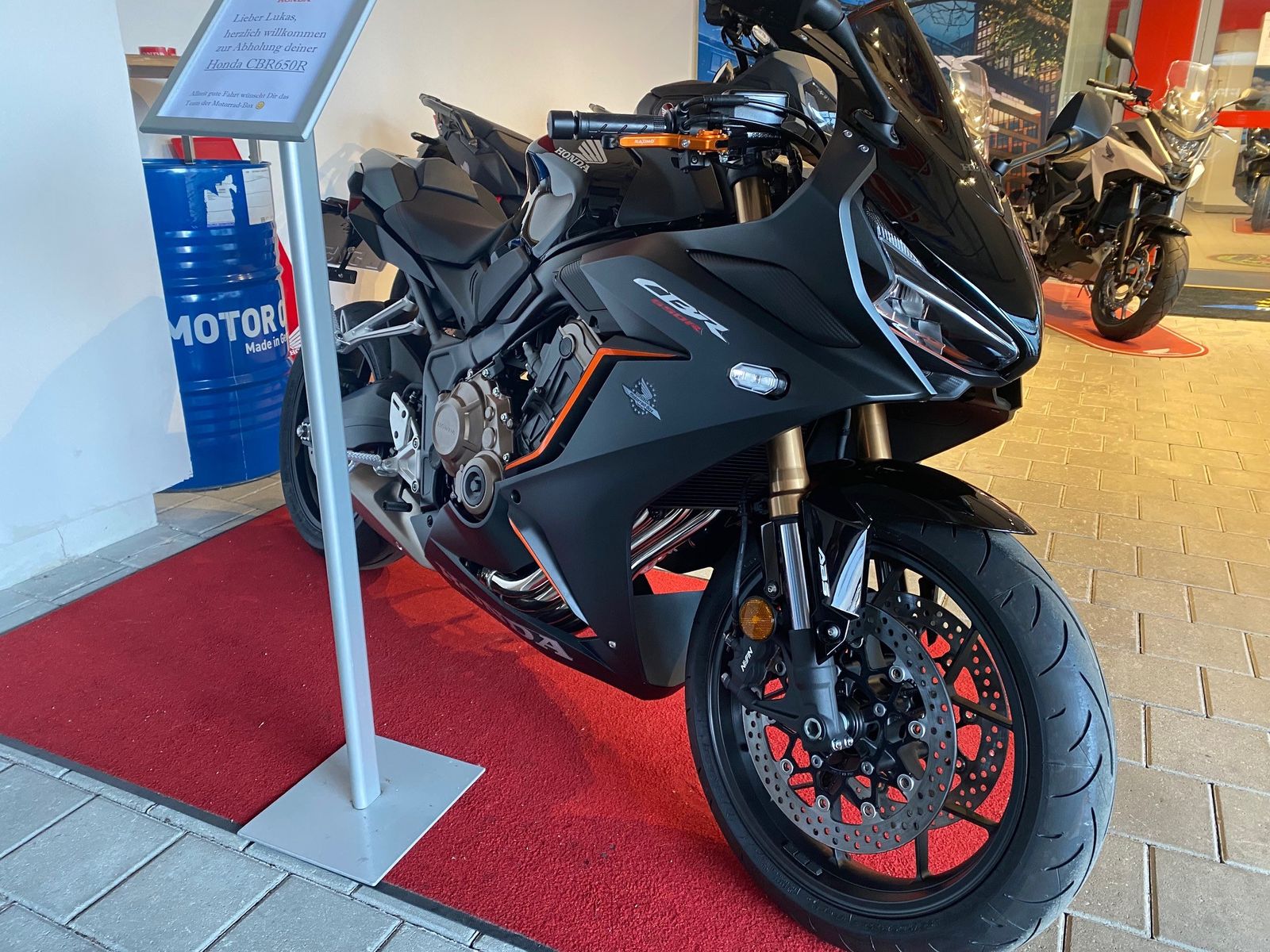 Sogar mit Begrüßungsschildchen, sehr löblich. Hört sich nach einem Händler an, der das zu was besonderem machen will.