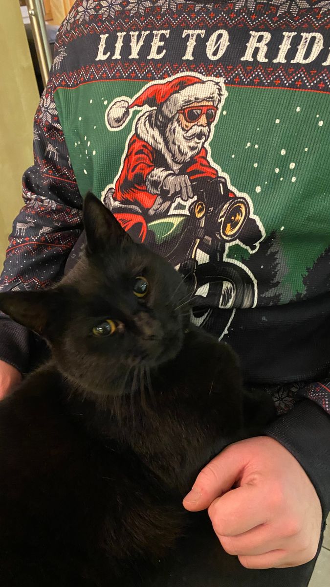 Der Weihnachtspullover knapp über 10.- . Der Moudi auf dem Schoss war vor bald 10 Jahren ursprünglich kostenlos; die bisher einzige Katze, die in den letzten 30 Jahren nicht überfahren oder vom Bauern im Feld nicht zerlegt wurde:
