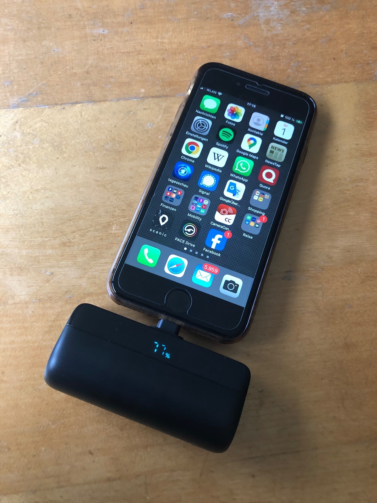 Ich habe mir für 18 Euro eine Powerbank zum Anstecken für mein iPhone SE gegönnt: