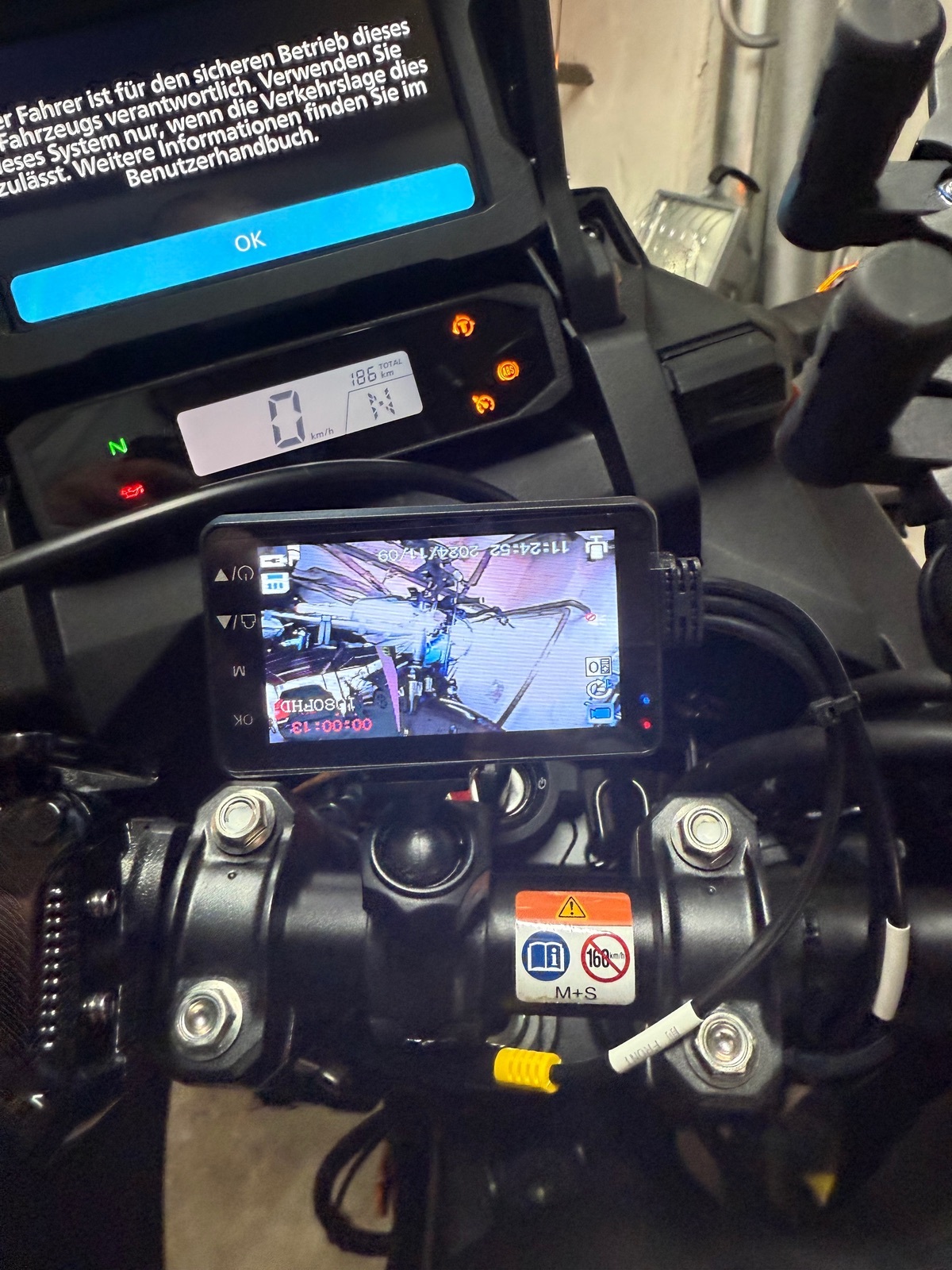 Die Hintere Kamera werde ich voraussichtlich an der Unterseite der Gepäckbrücke montieren, ich mag es wenn sie eher "versteckt" montiert ist, vor dem Rücklicht ist mir "zu prominent".