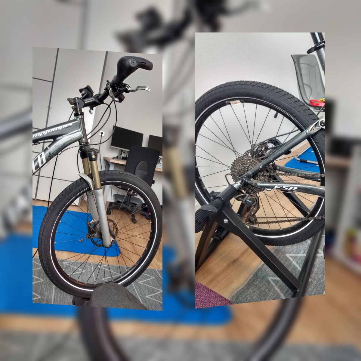 Alles anzeigenMein Specialized Stumpjumper Baujahr -Baujahr 2002 (!!!)- ist über den Winter als Hometrainer im Einsatz...