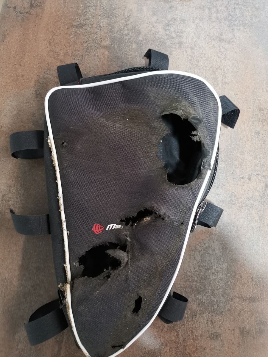 Schaden am Töff: Der Motorschutzbügel hat eine Scheuerstelle und meine Marselus Tasche in den Tankschutzbügeln hat alles andere abgefangen, sein einziger weiterer Kratzer an Lenker, Spiegel, Tankschutzbügel oder sonstwo! Der Inhalt der Taschen war ein Paar Arbeitshandschuhe im Wert von 3 € und ein Spanngurt im Wert von 5 €, sonst alles unbeschädigt