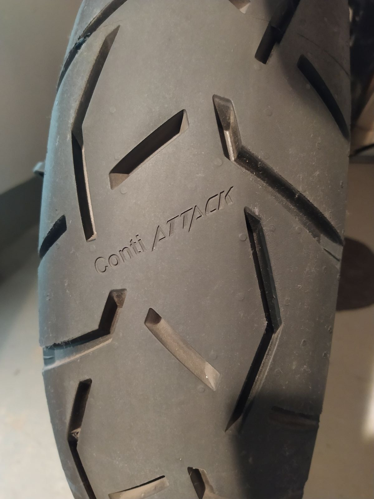 Heute neues Gummi aufgezogen. Der Erstausrüsterreifen (Bridgestone AX41) war nach 4000 km am Ende. Jetzt Conti Trial Attack 3. Der hat mächtig Profil - hinten nahezu 9 mm. Hoffentlich bringt der mehr Kilometer.