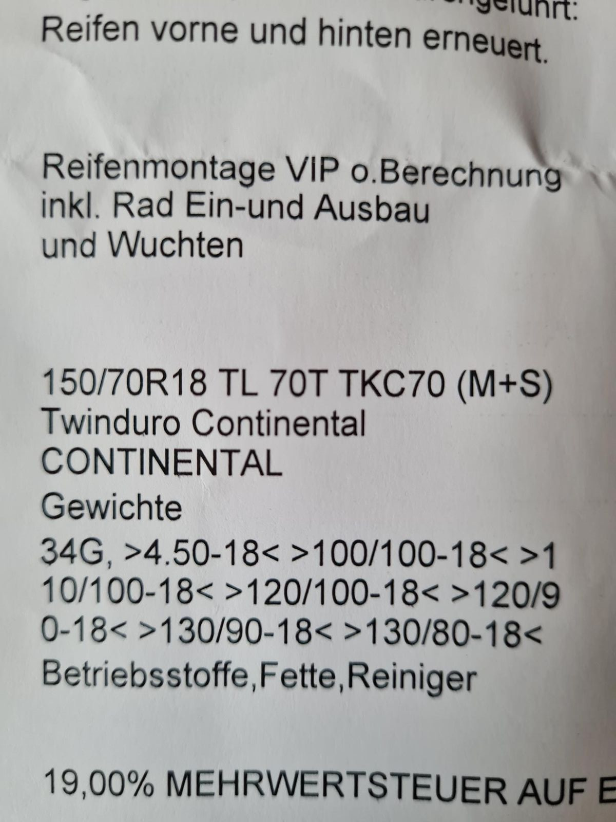 Nachdem ich seinerzeit nach dem Plattfuß den TKC80 aufziehen lassen musste (fremde Werkstatt)