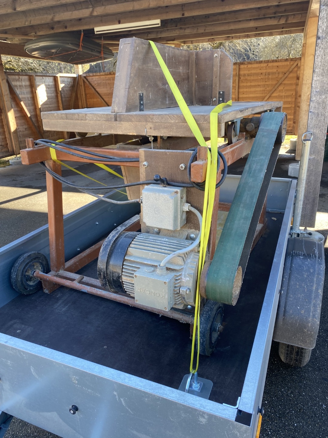 Alt, schwer, total überdimensioniert; aber mein und unverwüstlich. Ein sehr gut erhaltener Veteran, den ich für wenig Geld vor dem Alteisen bewahrt habe. Mit 380V für 1-2x im Jahr:Jawoll...schöne alte Brennholzsäge!