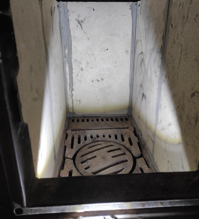 Ergebnis war etwas traurig... Nach dem ersten anheizen seit wohl etwa 10 Jahren kam mir die alte Ofenverkleidung entgegen gebröckelt...
