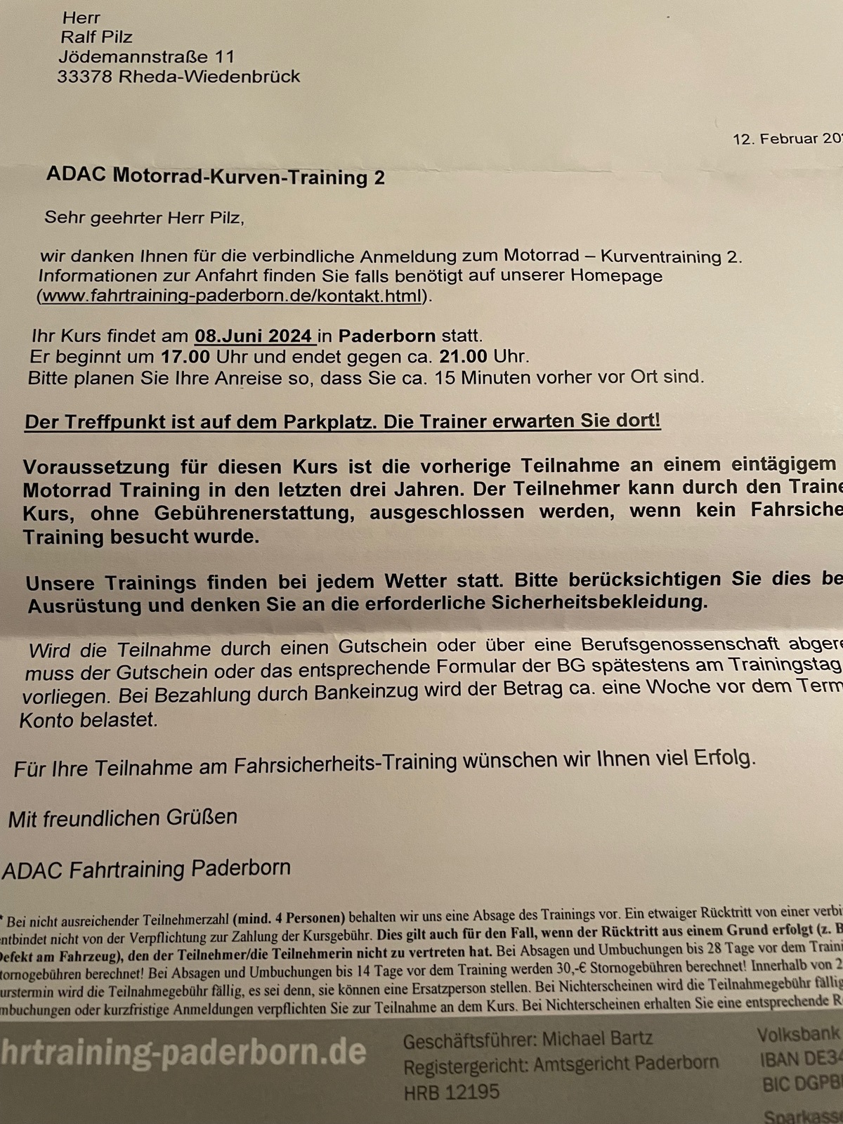 #6.173 Alles anzeigenWie jedes Jahr: ein Fahrsicherheitstraining beim ADAC gebucht.