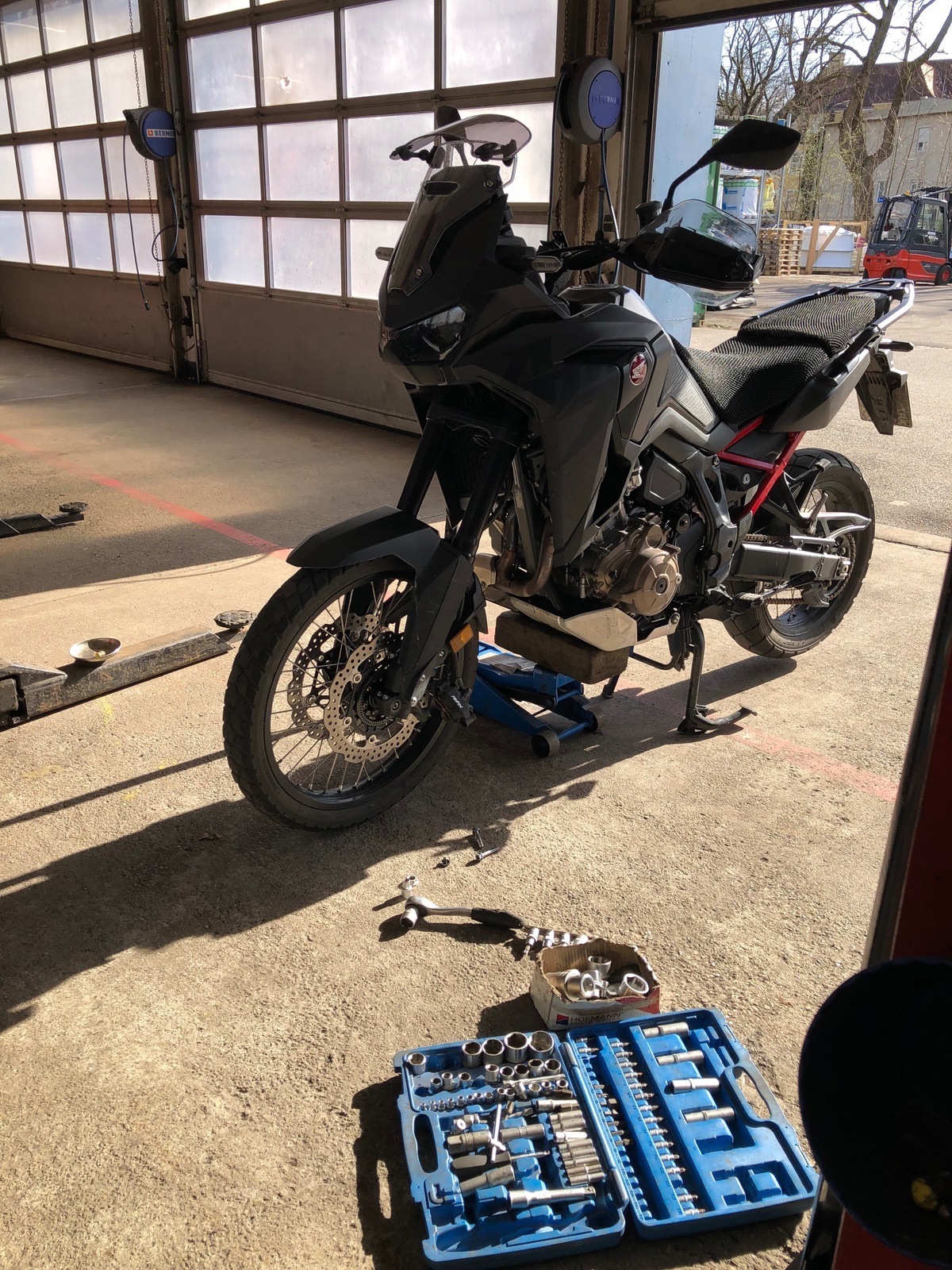 An dieser Stelle mal eine Empfehlung für den Quick-Reifenservice in der Provinostraße in Augsburg. Der Meister fährt selbst Mopped (Yamaha XJR 1200) und wechselt Motorradreifen mit großer Sorgfalt.