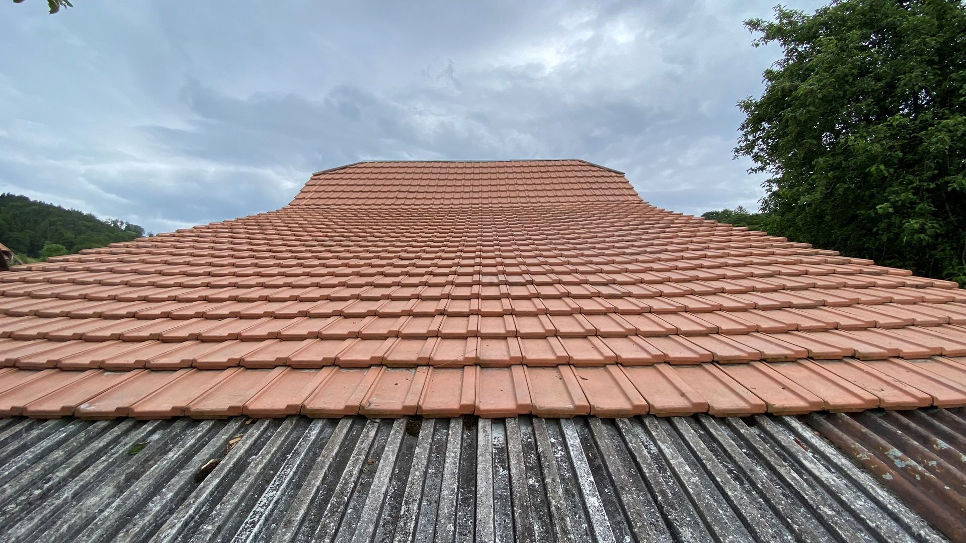 #6.947 Das 1,5tägige regenfreie "Zwischenhoch" genutzt und endlich die zerfallenden 100-jährigen Ziegel auf meiner Werkstatt (Baujahr 1805) vom Profi ersetzen lassen. Die ca. 1000 benötigten Ziegel konnte ich für einen Spottpreis gebraucht kaufen, sind aber wie neu. Musste sie natürlich abholen und alle eigenhändig auf- und abladen. Waren sechs Fahrten mit dem 750kg Anhänger. Die halten wieder 100 Jahre