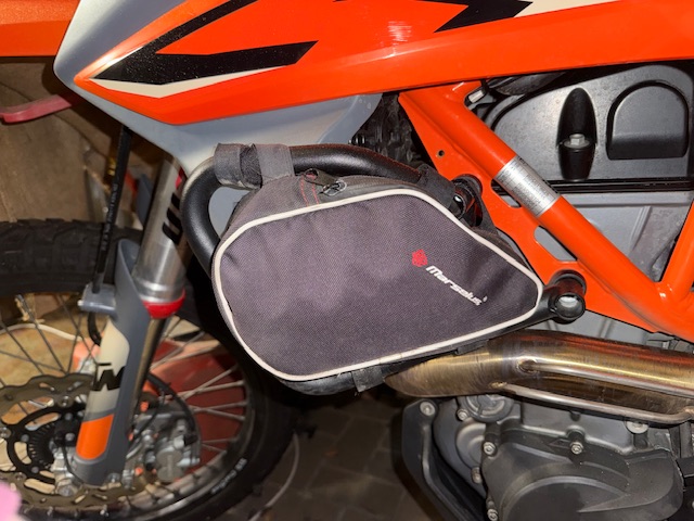 So zusatztaschen sind doch oft nur drangefrickelt: egal ob Kabelbinder oder so lustige, verstellbare Gurte, die man auch irgendwo drumfriemeln muss.. kenn ich auch noch von meiner AT und jetzt hab ich die Mini-Taschen an meine Ktm übernommen. Der Ein oder Andere wird die wiedererkennen