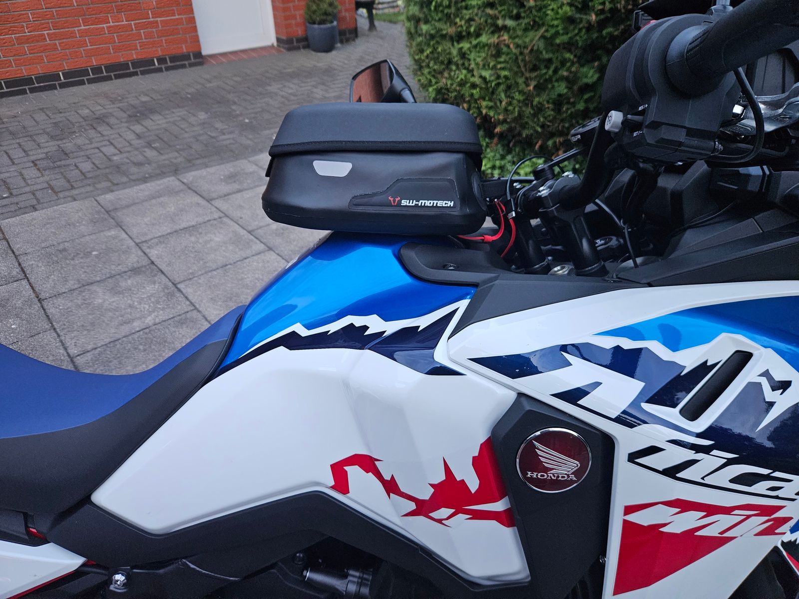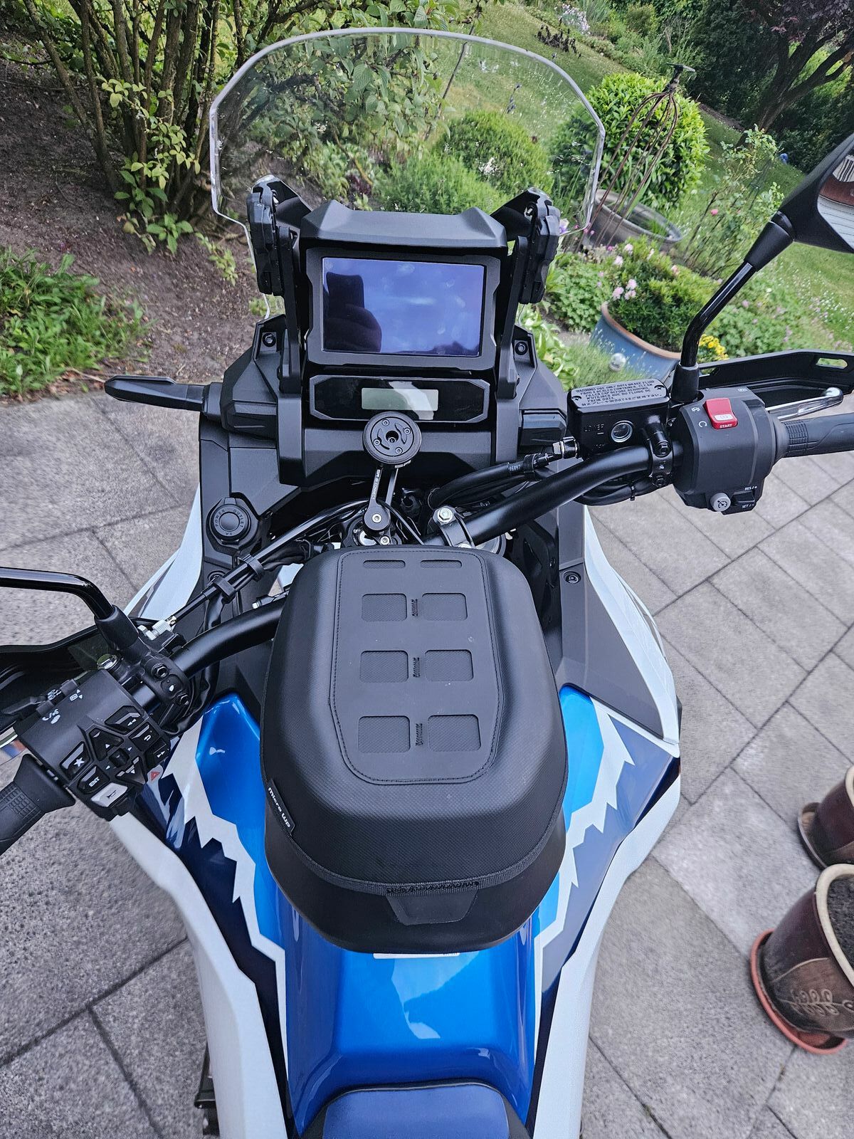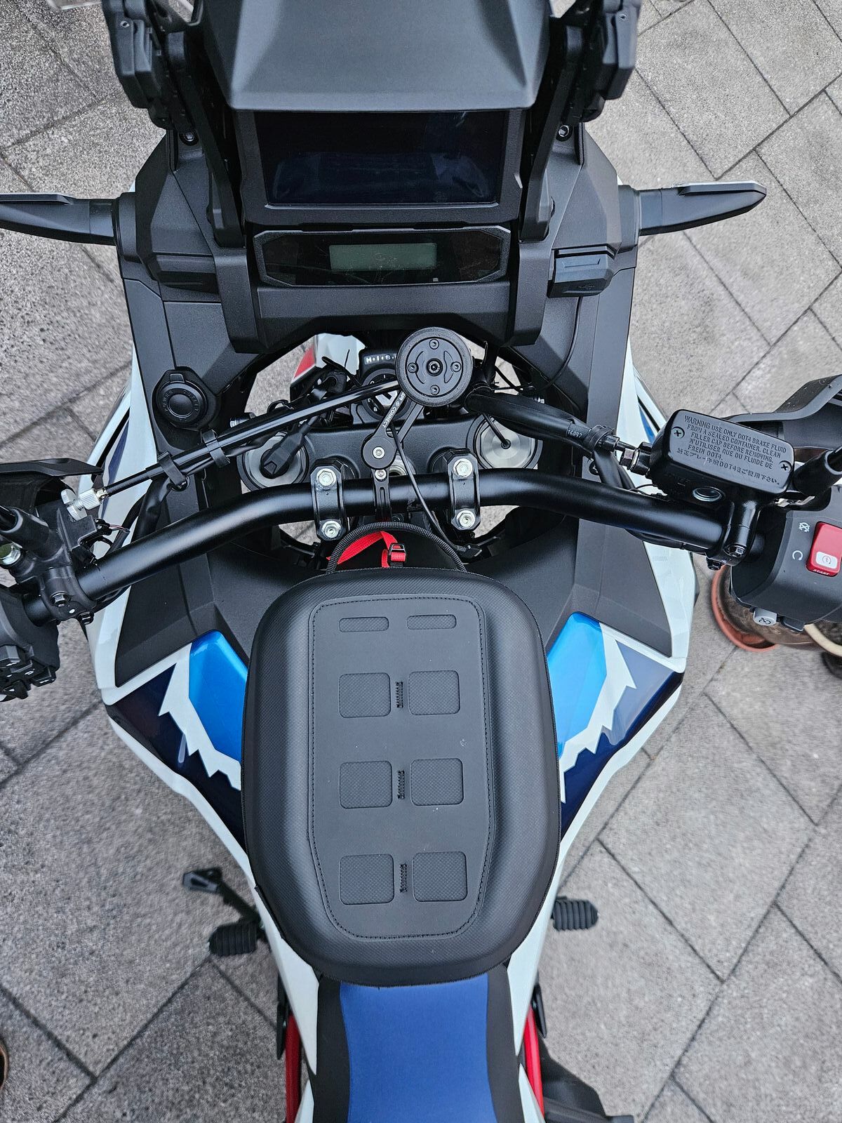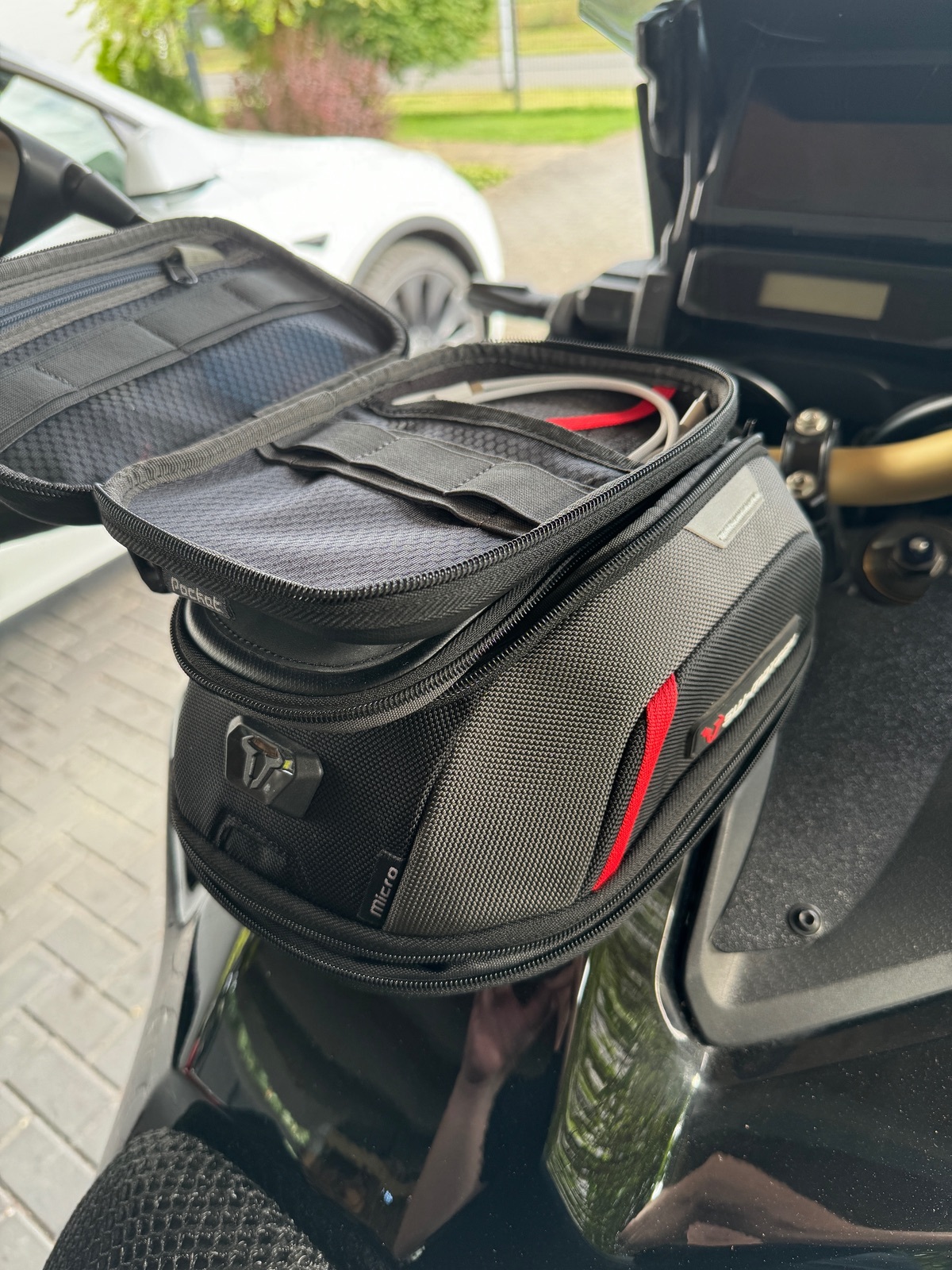 Montiert in der hintersten Position damit noch Platz für das Smartphone bleibt, welches hochkant ausgerichtet ist.