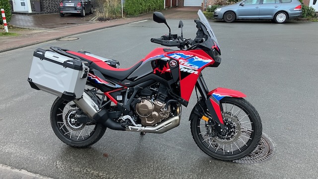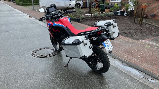 Mit den Koffern ist die AT dann aber doch 119 cm breit und sieht ganz schon wuchtig aus, schön ist anders