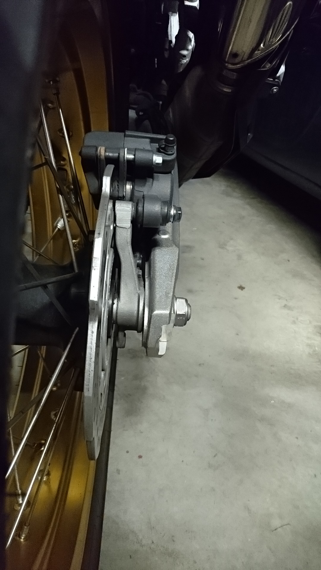 Das Einzige, was ich zusätzlich gemacht habe, ist, die Bremsbeläge hinten ganz nach außen gedrückt.