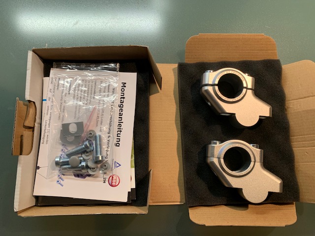 ich biete einen Satz neuwertige Voigt MT Lenkererhöhung. Diese waren nur ein mal zur Probe angebaut.