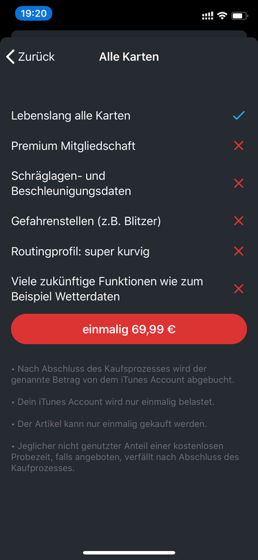 das stimmt nicht. Habe gerade mal für dich geschaut. Du kannst alle Karten einmalig (ohne Premiumfunktionen) für 69,99 in der App kaufen.