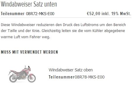 ich habe auf der Honda Zubehörseite gelesen, dass die unteren und oberen Windabweiser immer nur gemeinsam montiert werden müssen.