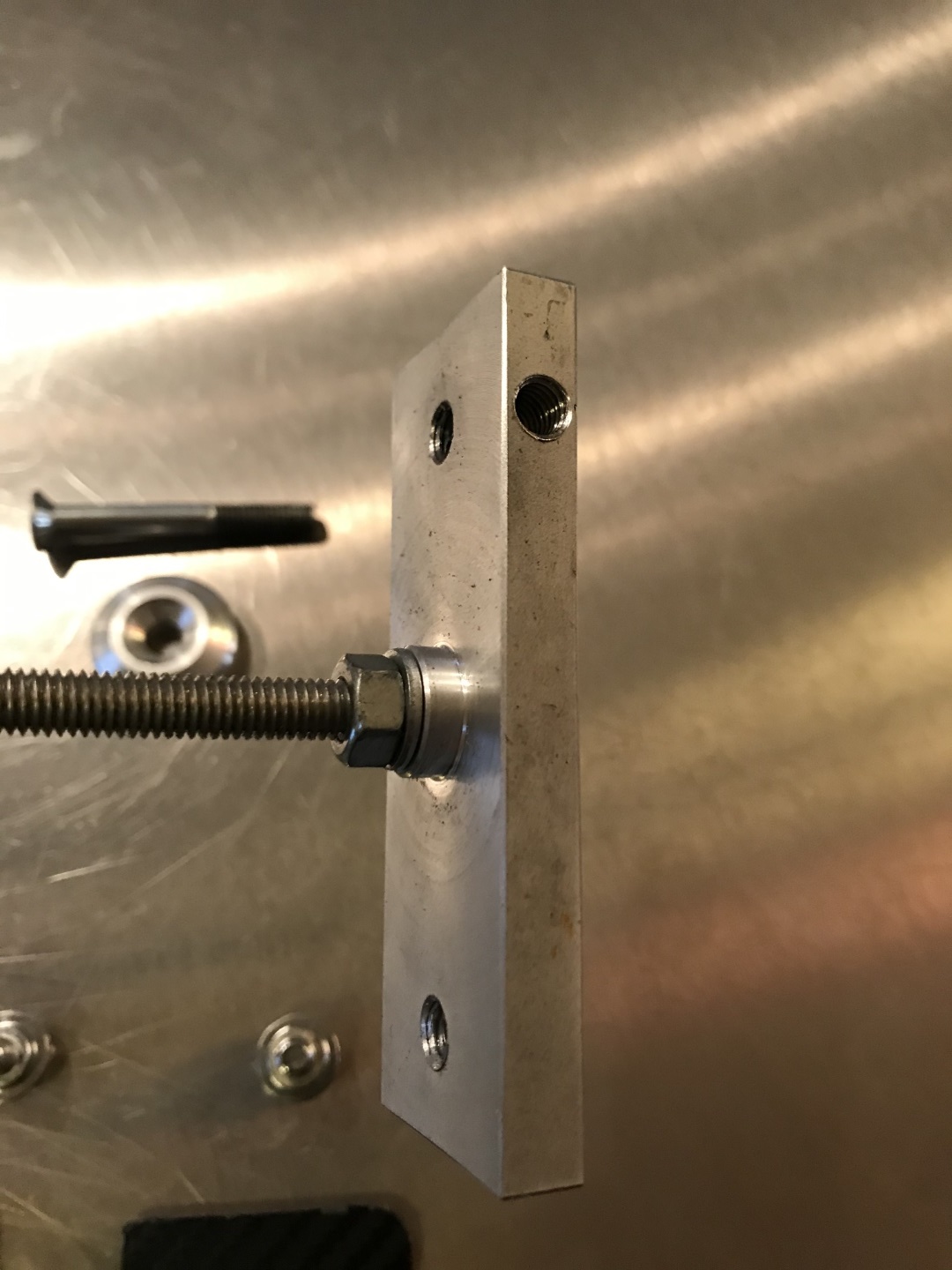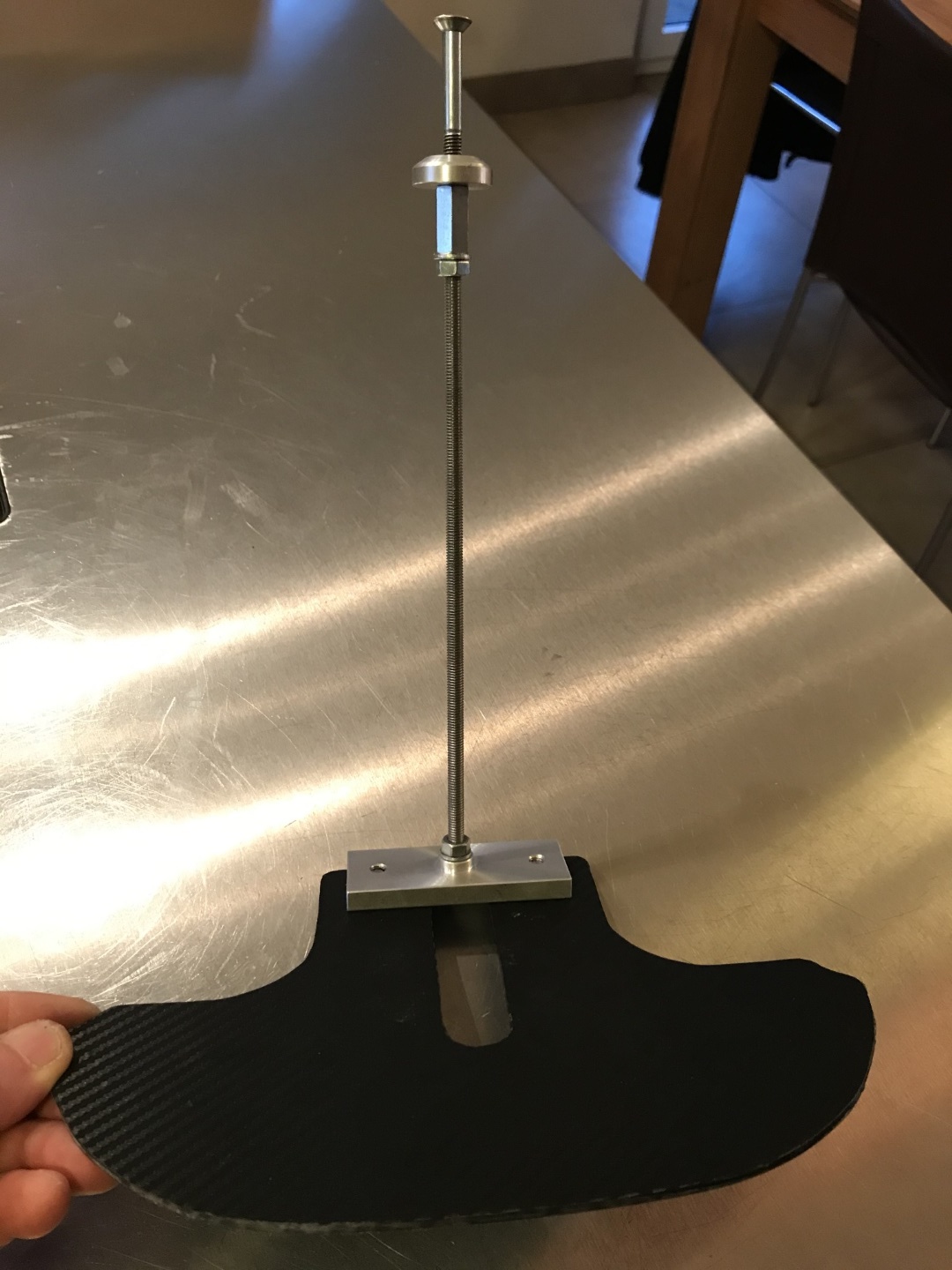 - Darin eine mit einer M6-Mutter gekonterten Gewindestange aus INOX (besser gegen Verzug)