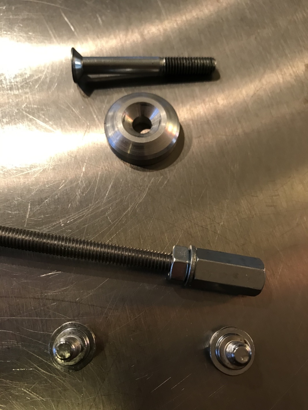 - In der Mitte wird die Gewindestange gescchraubt und wiederum gekontert