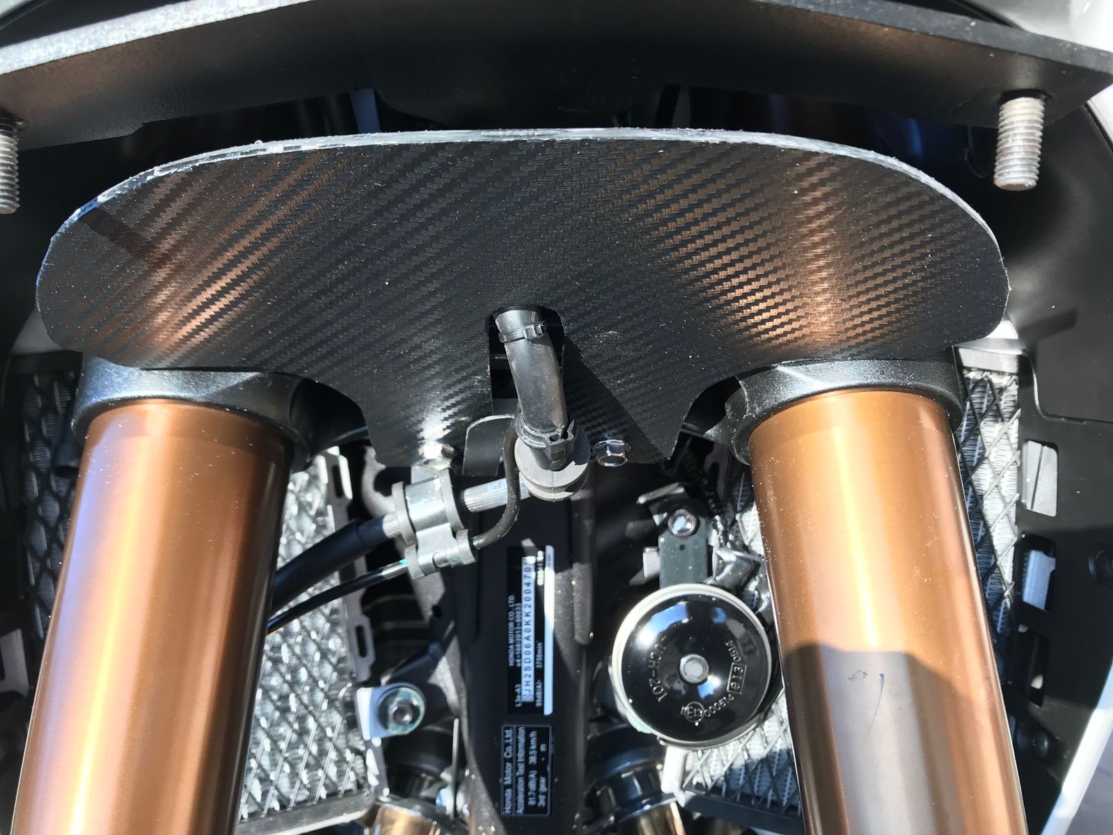 Nur so nebenbei bemerkt: diese Art der Lösung am unteren Gabeltunnel scheint (aerodynamisch ?) die Bessere Lösung zu sein, z.b. Hat das die F850Gs bzw. die R1250GS serienmässig.