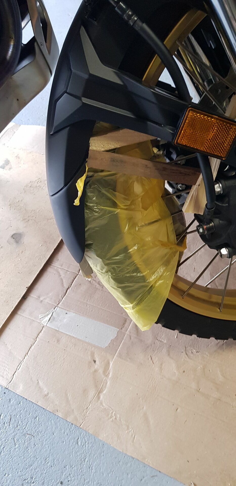 #76 Habe bei meiner ATAS schon bei der Abholung bei meinem freundlichen von Bodystyle vorn die verlängerung und hinten die Hinterradabdeckung mit kettenschutz in schwarz dranmachen lassen. Kosten 220€ gesamt. Hat sich gelohnt da weniger Spritzwasser die Maschine verdreckt. Bin voll zufrieden damit.