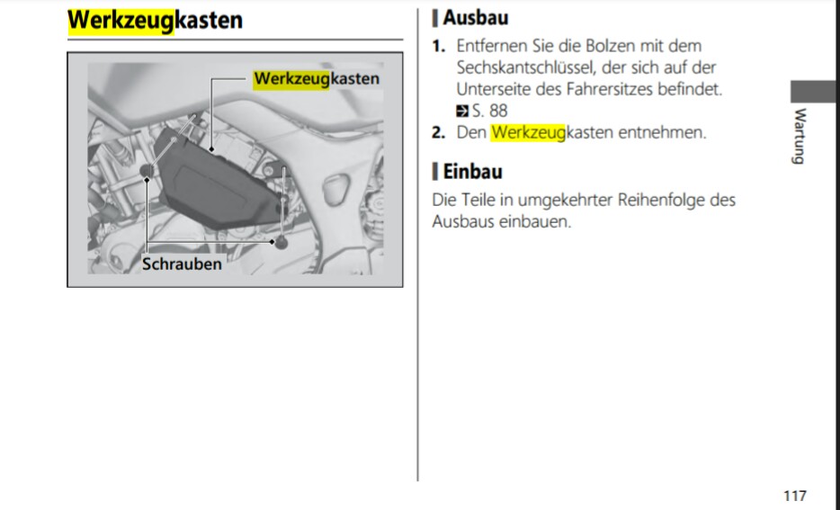Wo Schrauben fuer die Original Werkzeugbox kaufen?