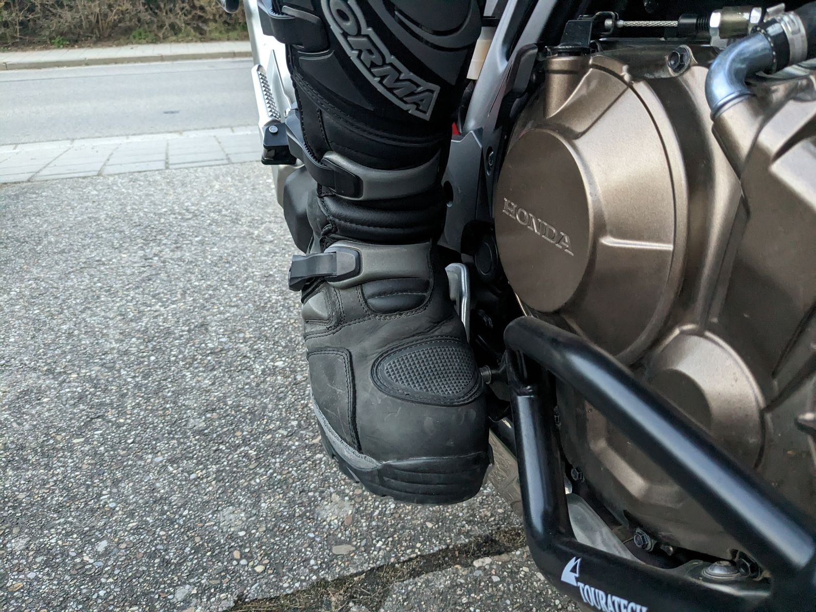 Aus den Bildern im Internet wird man nicht wirklich schlau. Man sieht nicht wie breit die Dinger bauen, wo Stiefel & Bremshebel sich treffen usw. Fotos sind oft zu weit weg, dunkel, etc., also wenig aussagekräftig.
