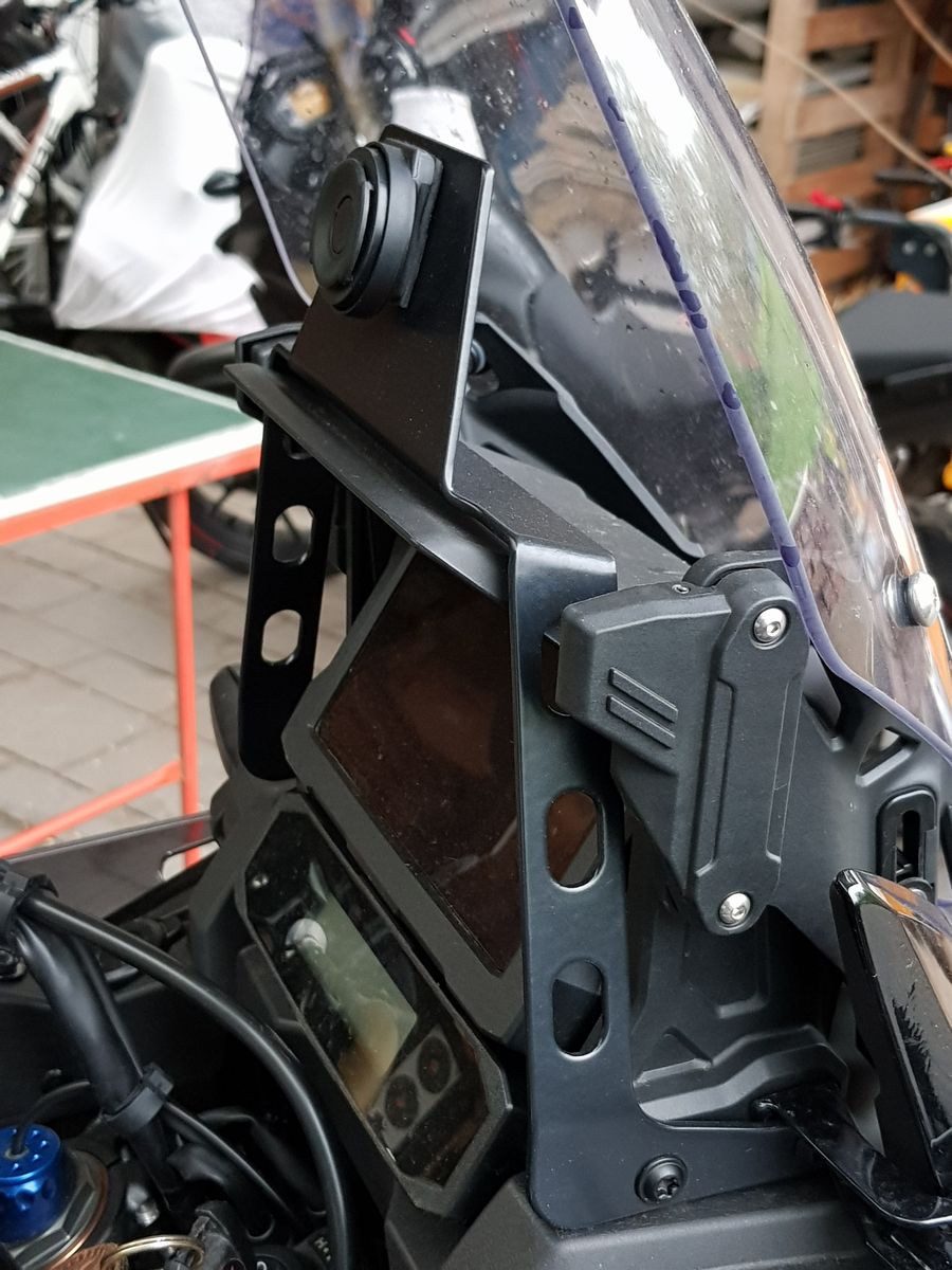 da ich kein spezielles Navi nutze, sondern übers Smartphone mit Calimoto zum Streckenaufzeichnen oder zum navigieren unterwegs bin, reichte der Fahrradhalter....auch bei höheren Geschwindigkeiten und auf holpriger Strecke hat er bisher tadellos seinen Dienst verichtet. Schaun wir mal wie er sich jetzt an "der Dicken" so schlägt.