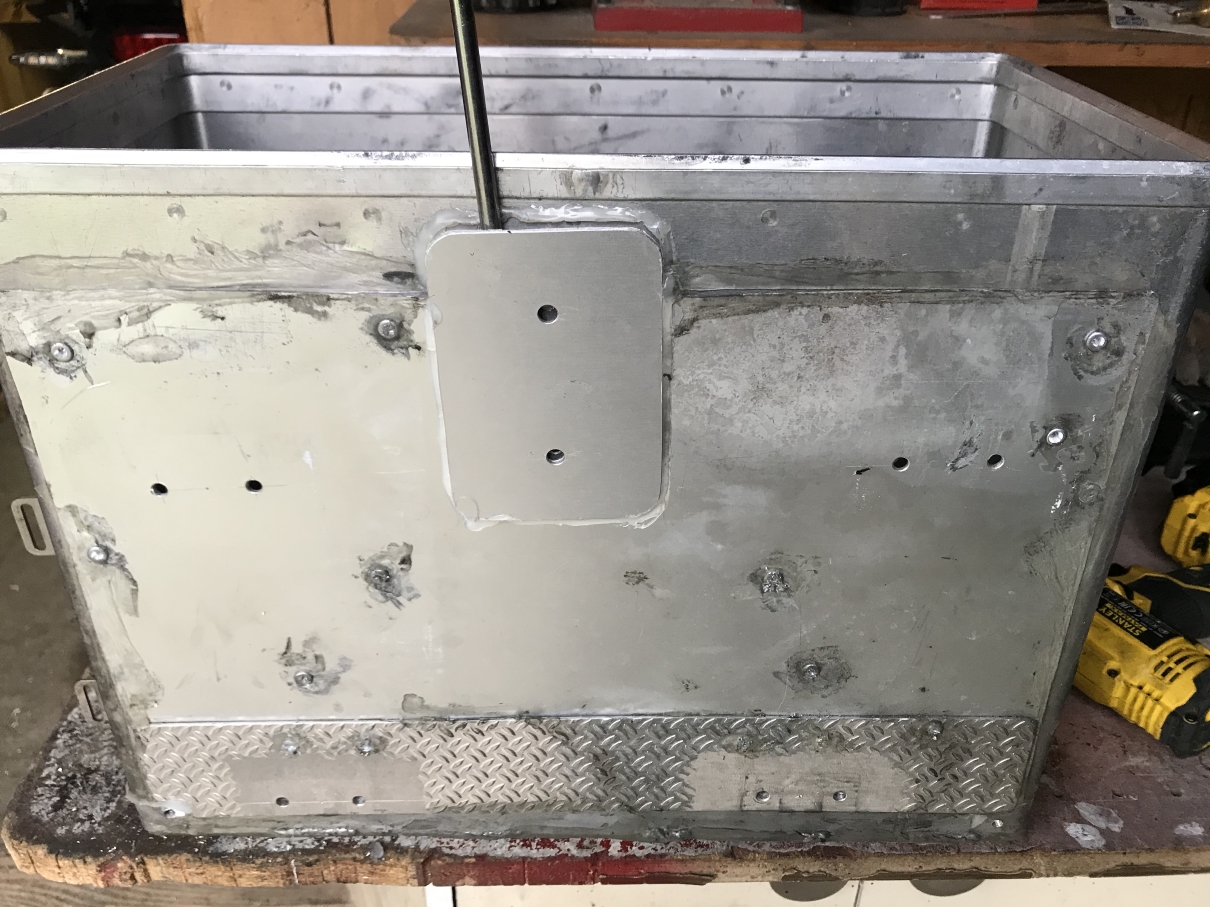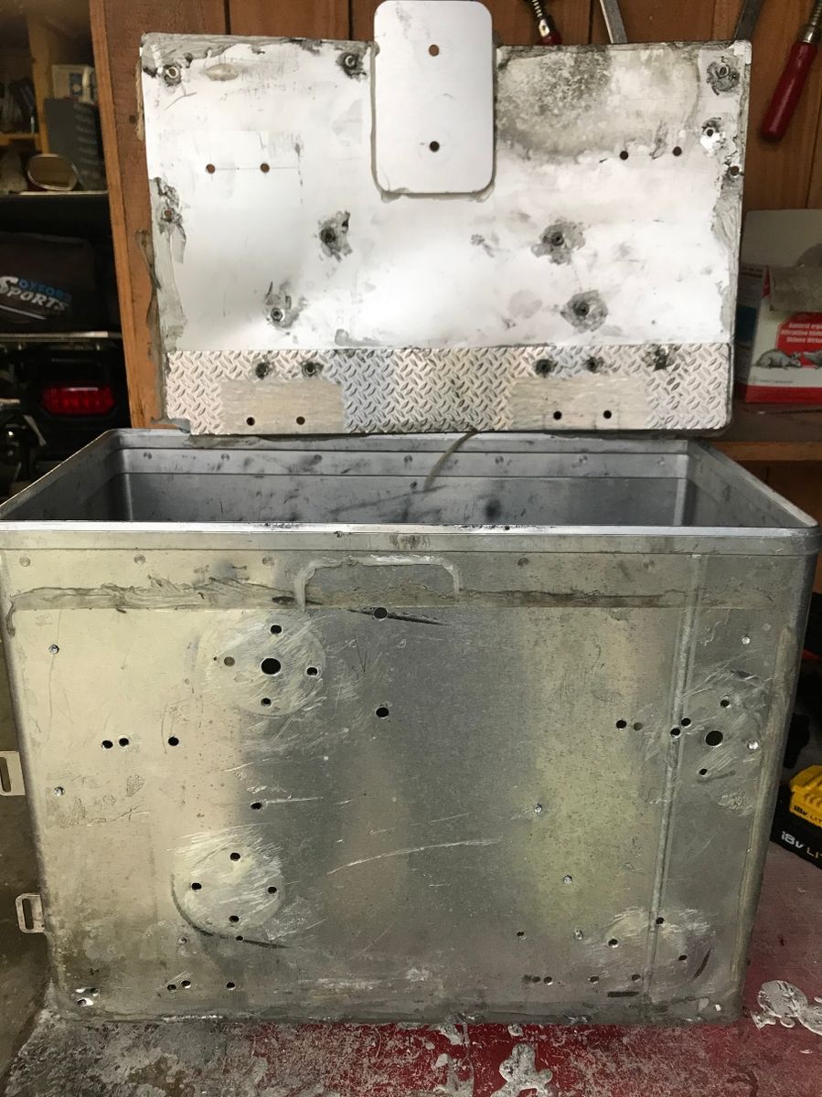 Das Ausgangsmaterial war etwas erlebnisreich. Stark gebraucht, 100 Löcher von einigen Vorbesitzern, dazu eingedrückt, verzogen und verbeult. Es wurde bereits einmal eine Aluplatte draufgebaut, um die Löcher zu kaschieren und wieder andere zu bohren. Fazit: wegschmeissen; oder... ein tolles Corona-Projekt :P